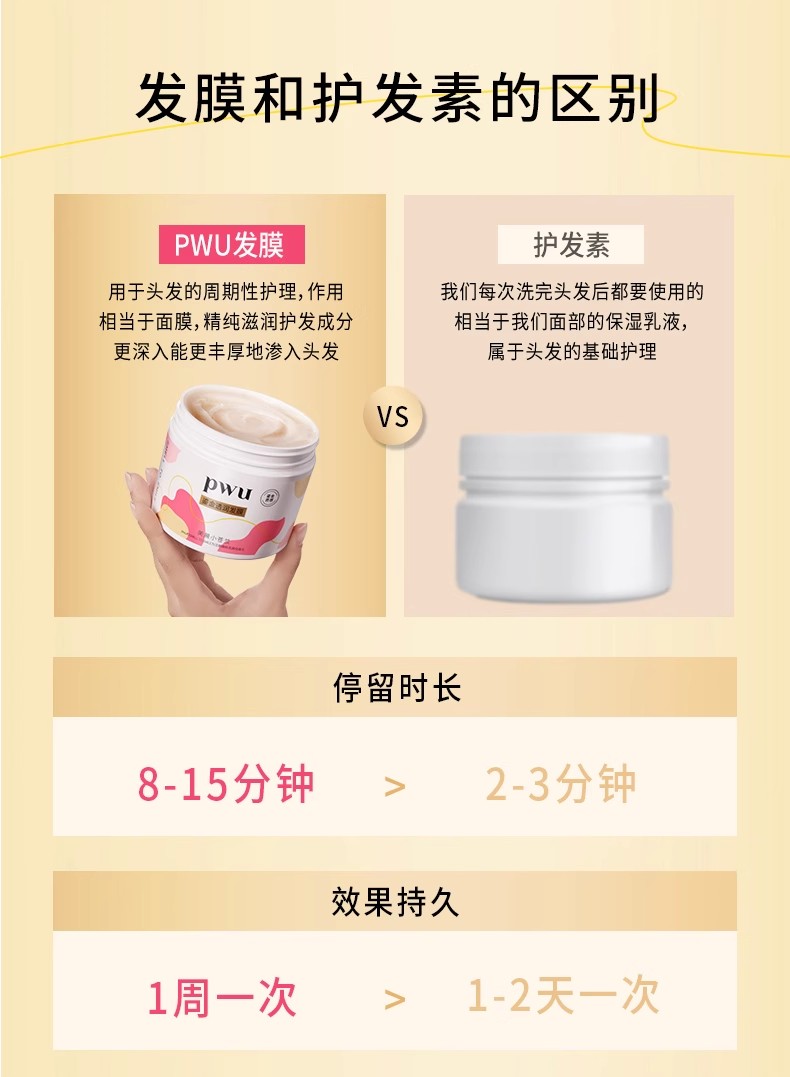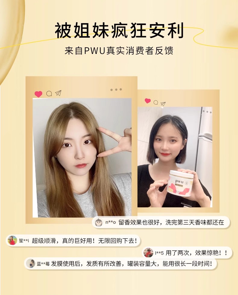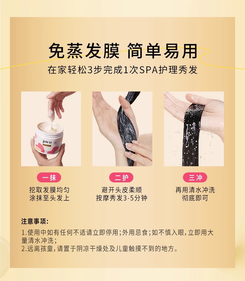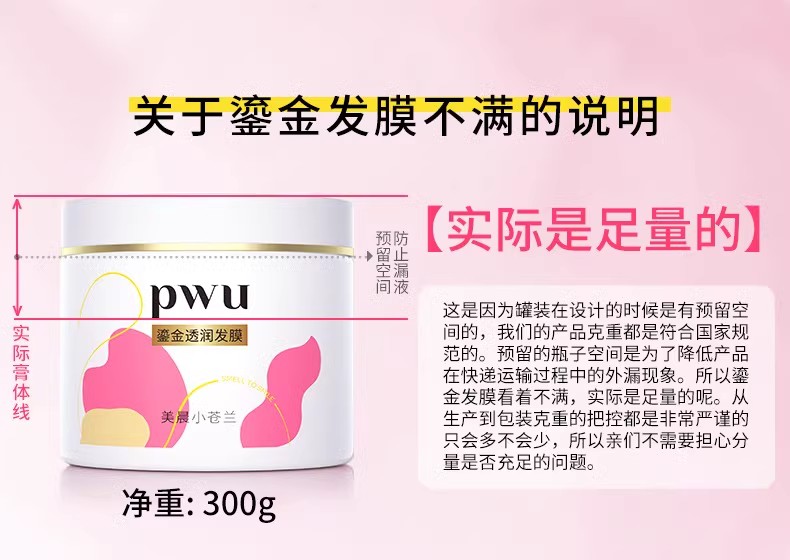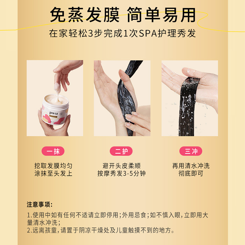 PWU鎏金发膜花漾玫瑰300g精油护发柔顺补水保湿防毛躁干枯非护发素免蒸