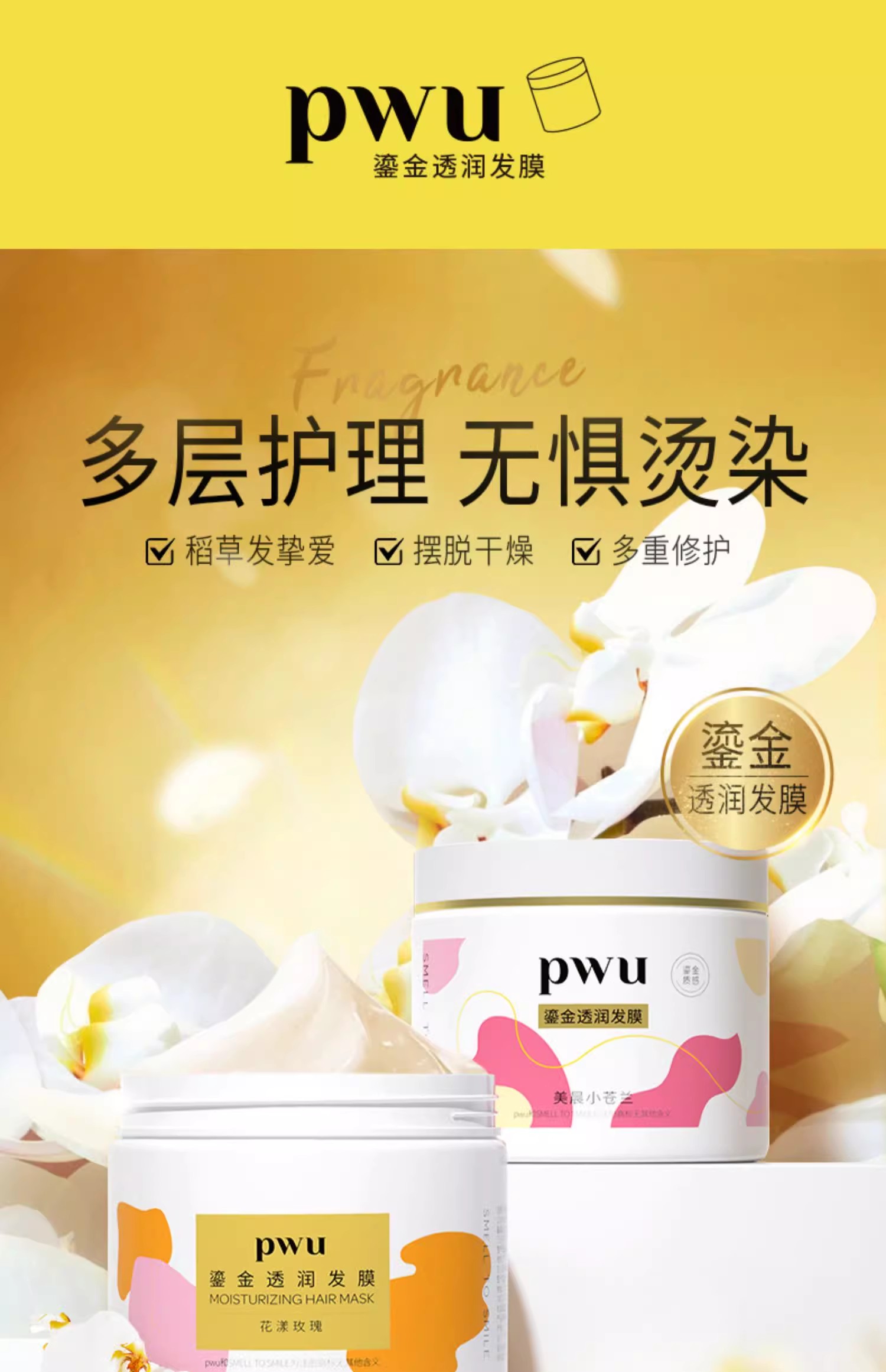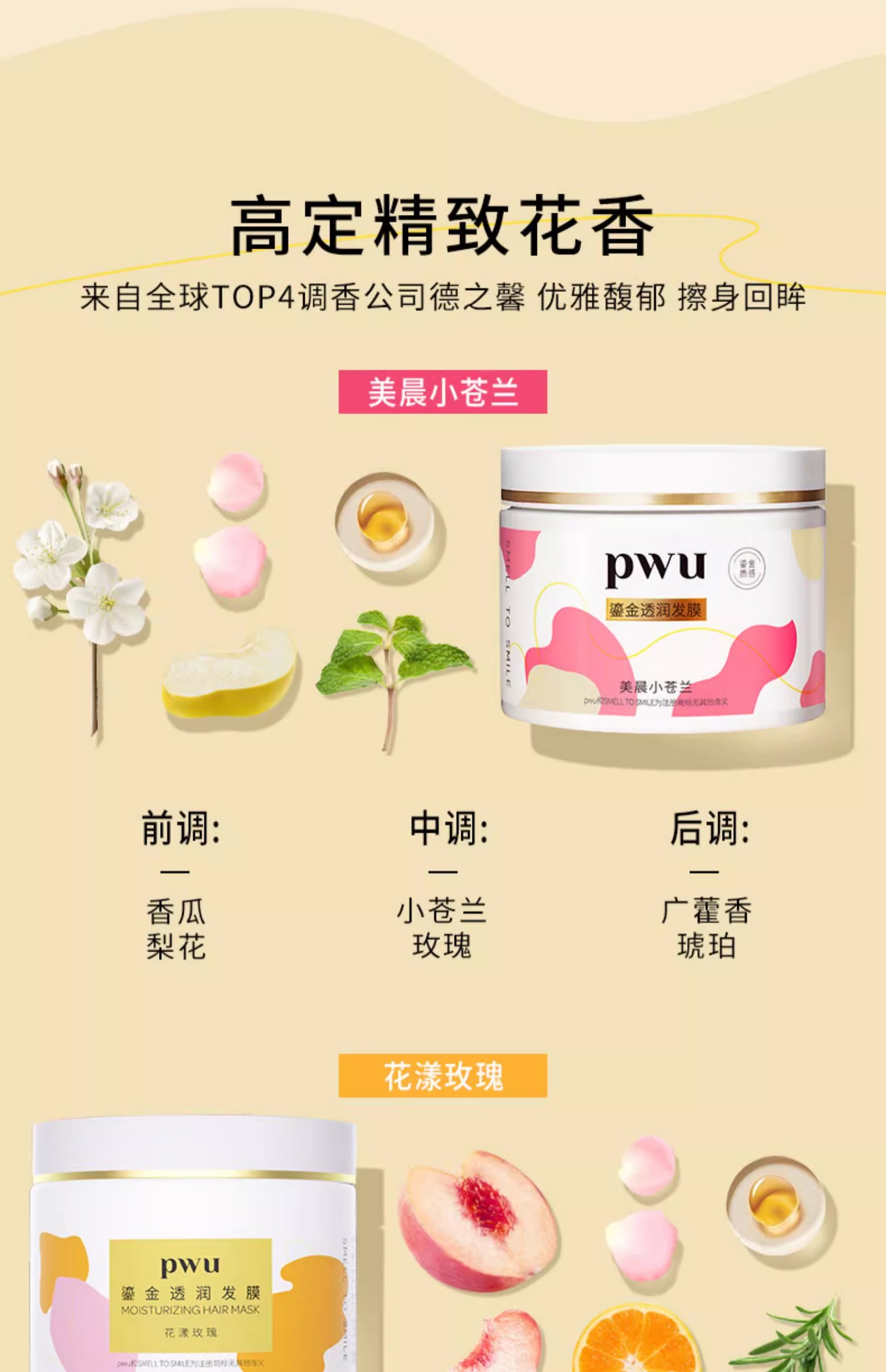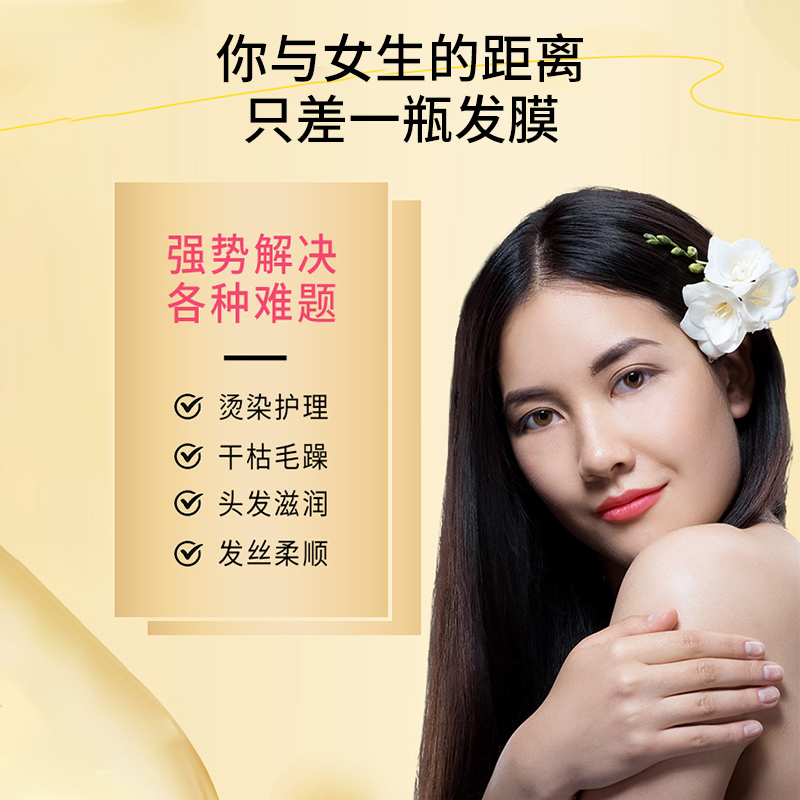 PWU鎏金发膜花漾玫瑰300g精油护发柔顺补水保湿防毛躁干枯非护发素免蒸