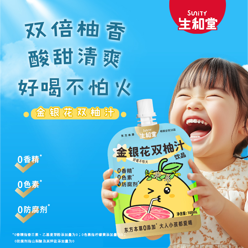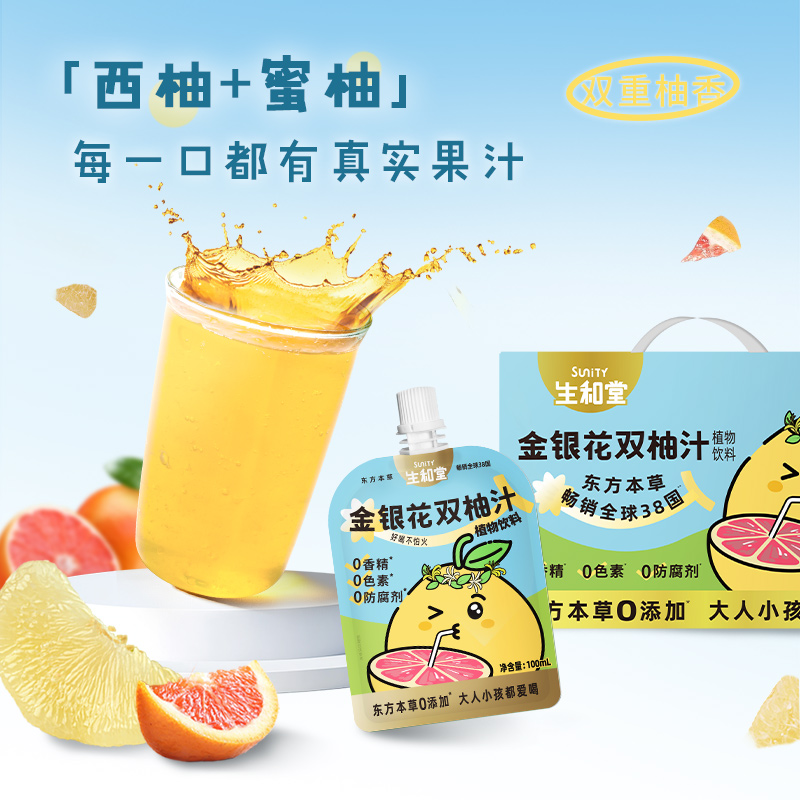 生和堂饮料本草果汁金银花双柚汁100ml*12袋礼盒装