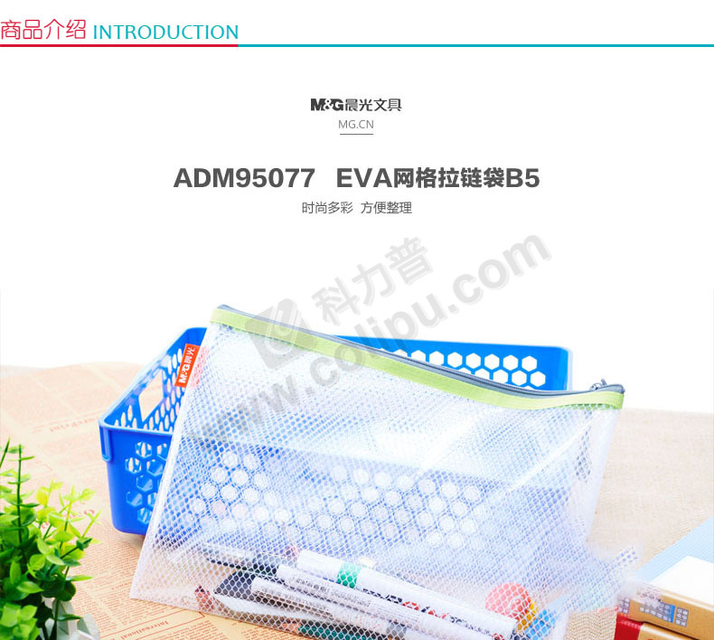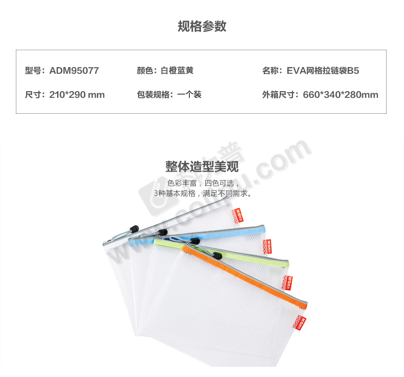 晨光 M&G EVA网格拉链袋 ADM95077 B5 (白、橙、蓝、黄 颜色随机)
