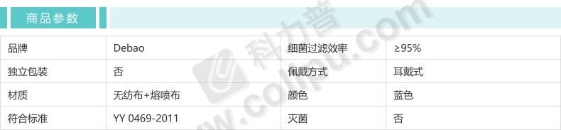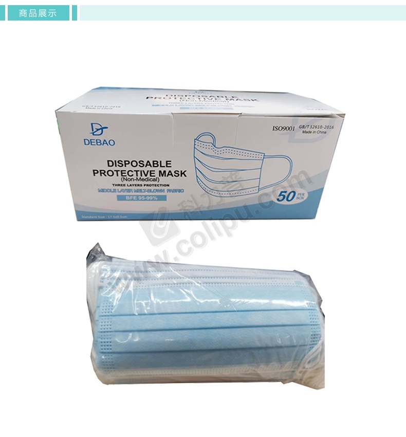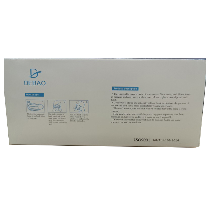 Debao 德宝 一次性防护口罩 (蓝色) 50个/盒 40盒/箱 (非医用)