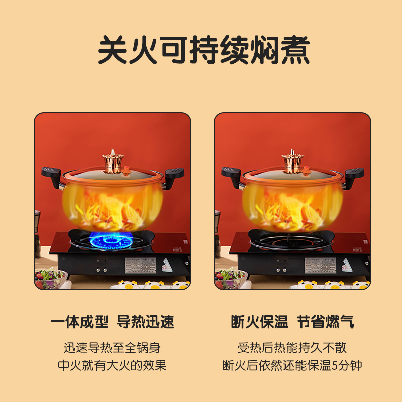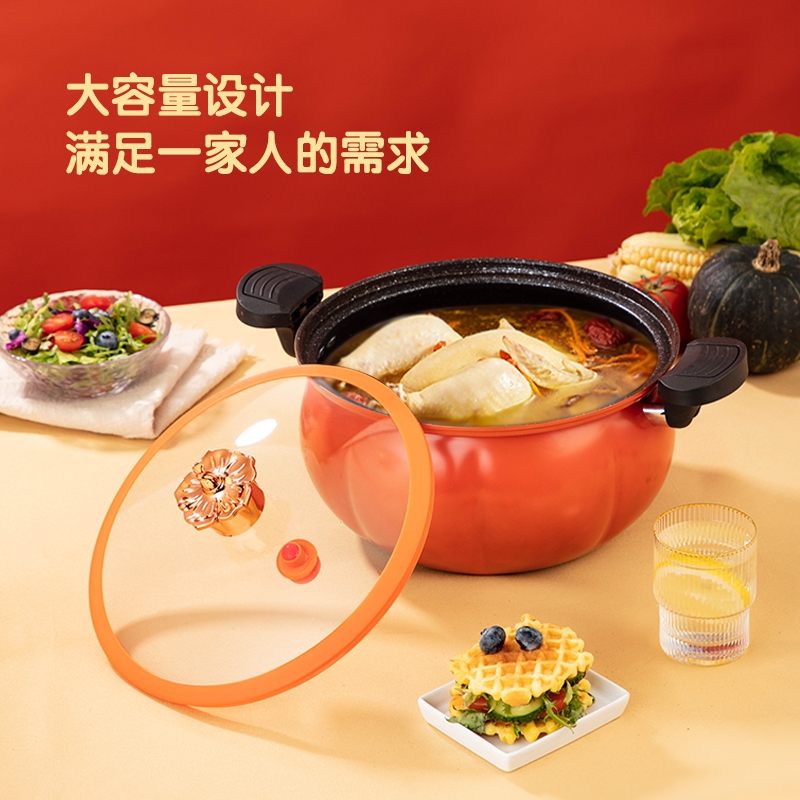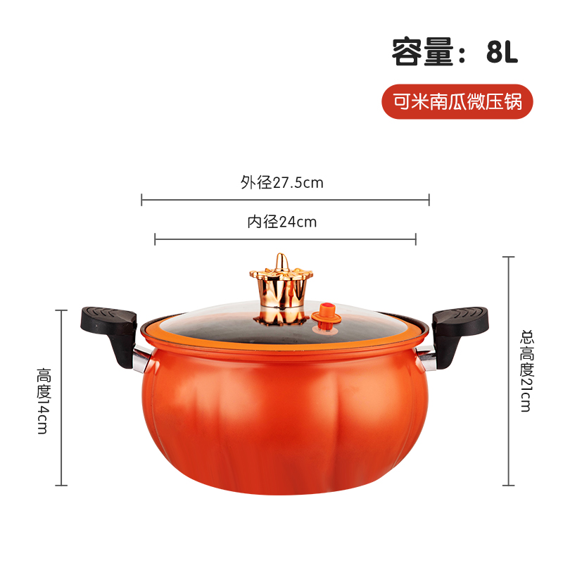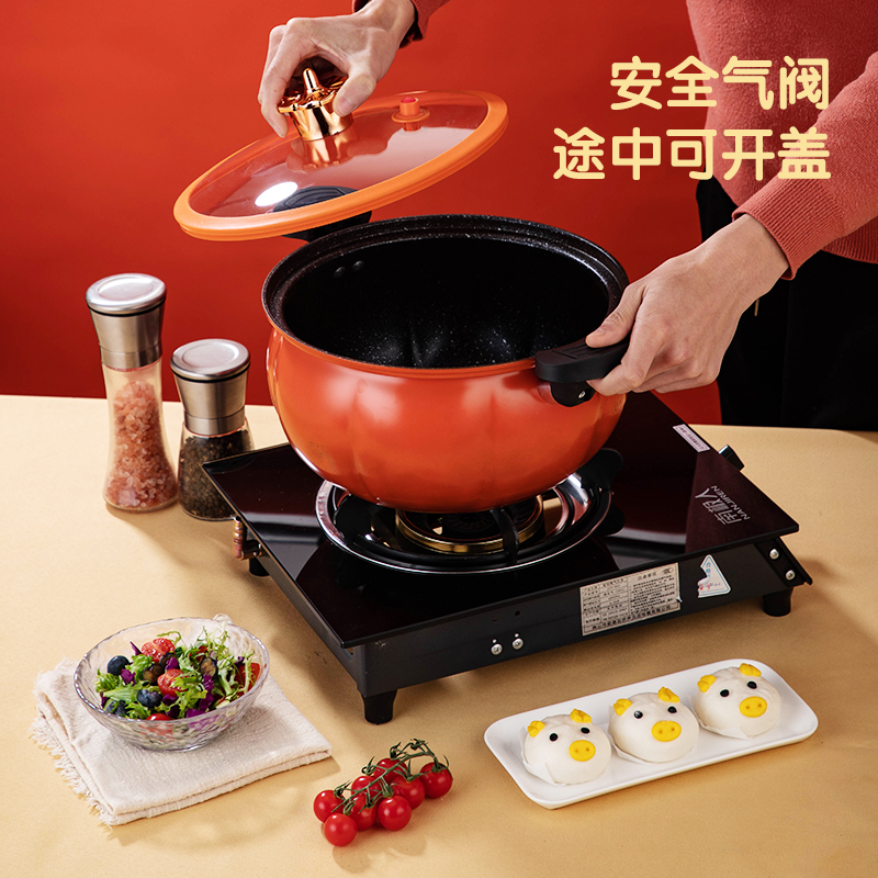 NORTON诺顿可米南瓜微压锅3TKM026微压锅南瓜汤锅不粘炖锅麦饭石色燃气灶电磁炉煲汤煮粥锅8L大容量 橙色