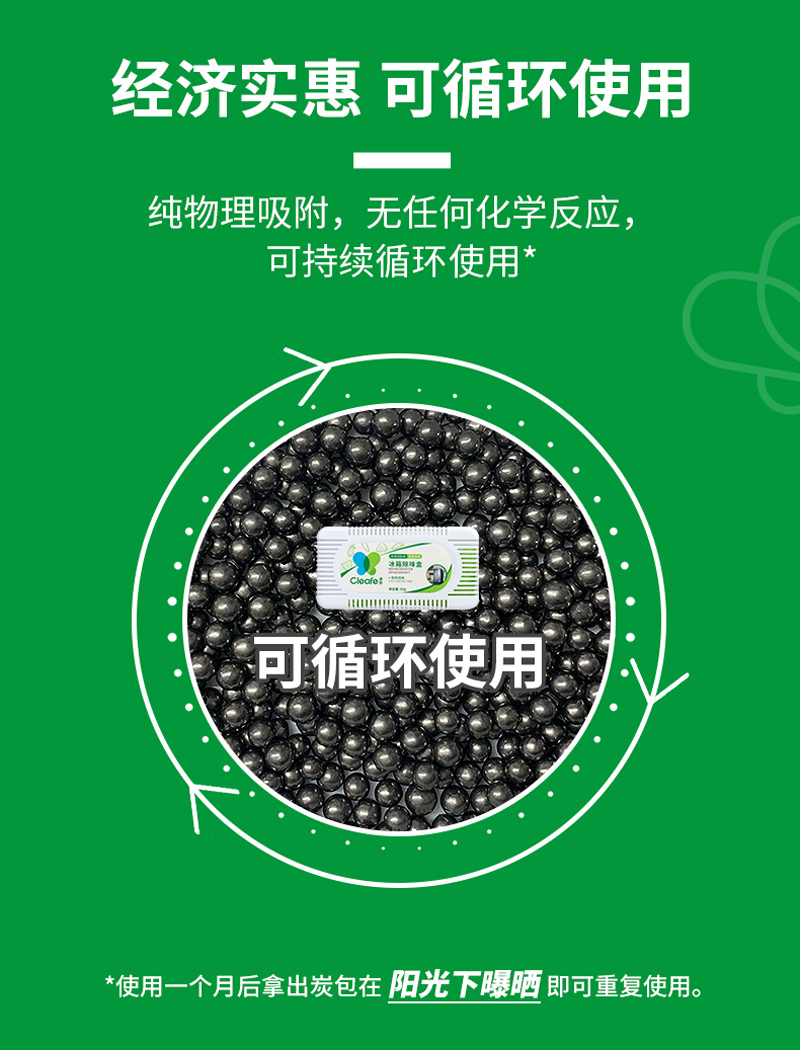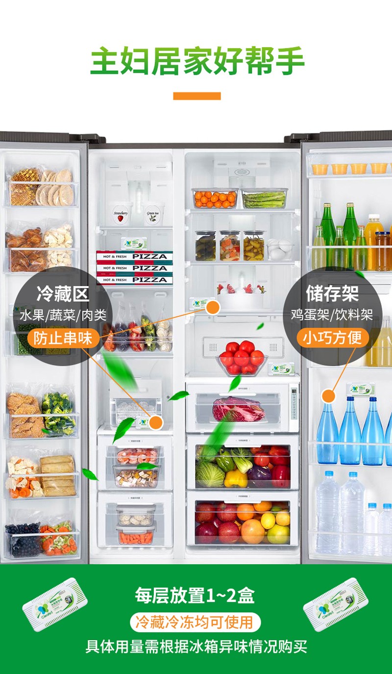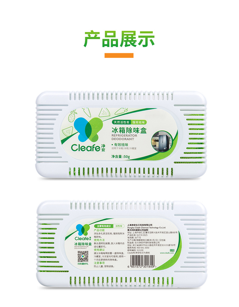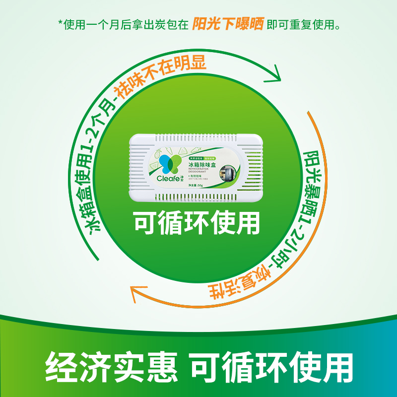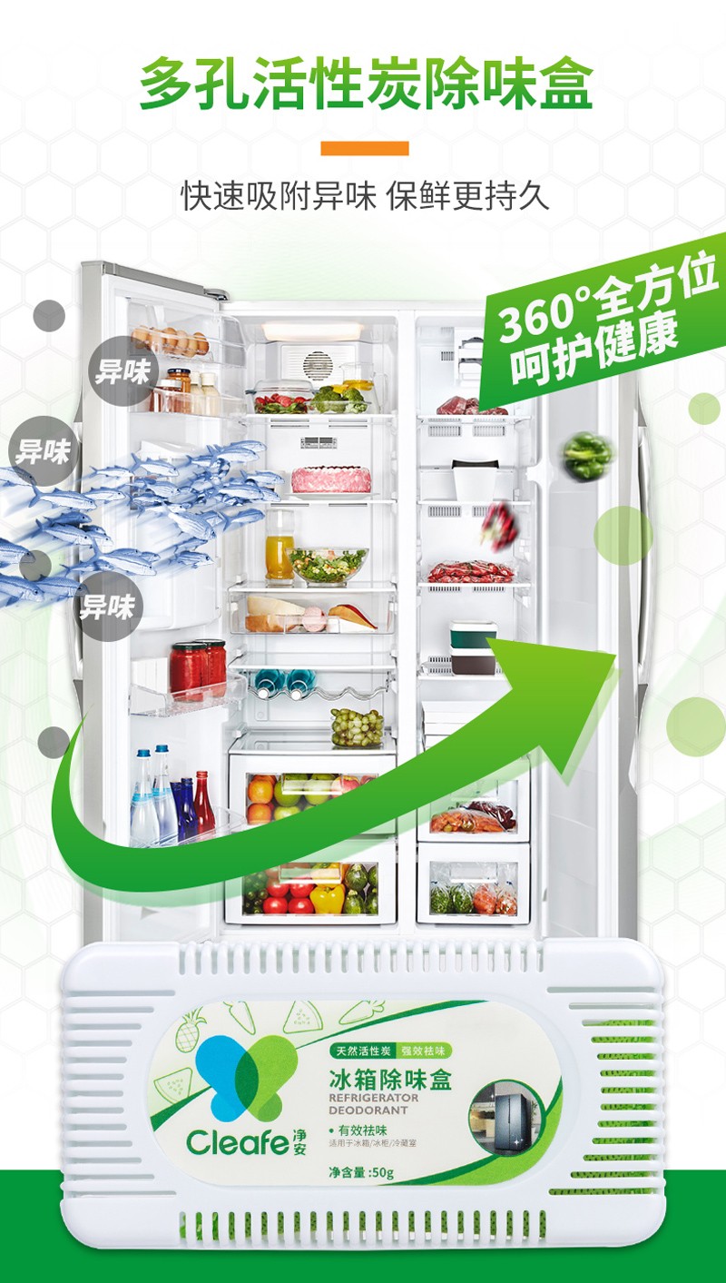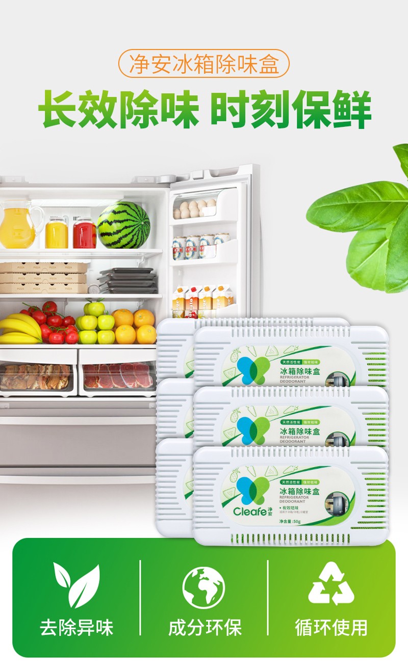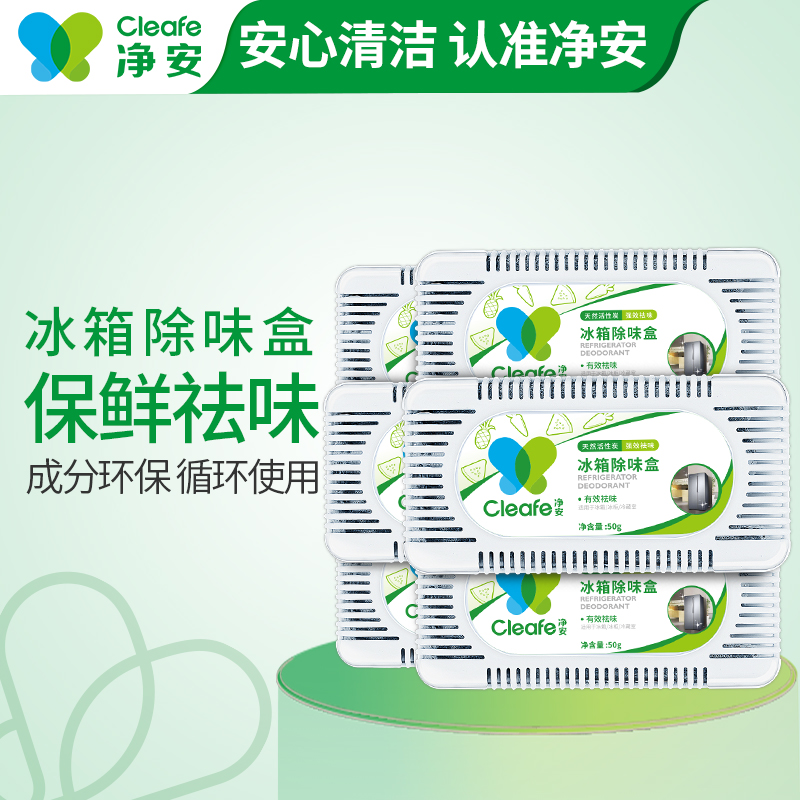 净安冰箱除味剂50g*6盒家用除臭剂盒活性炭纯物理吸异味除臭神器防串味