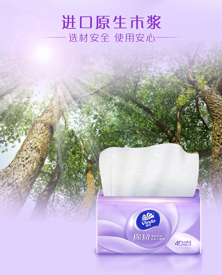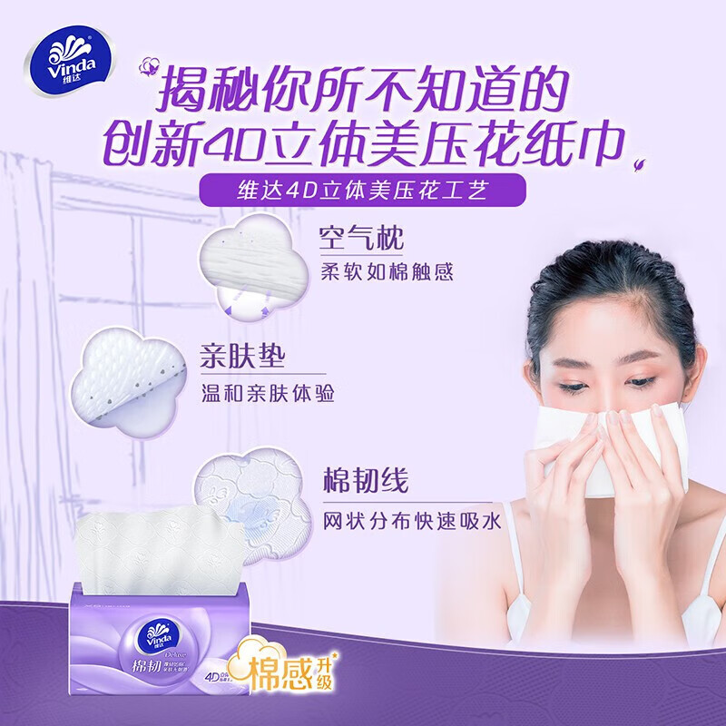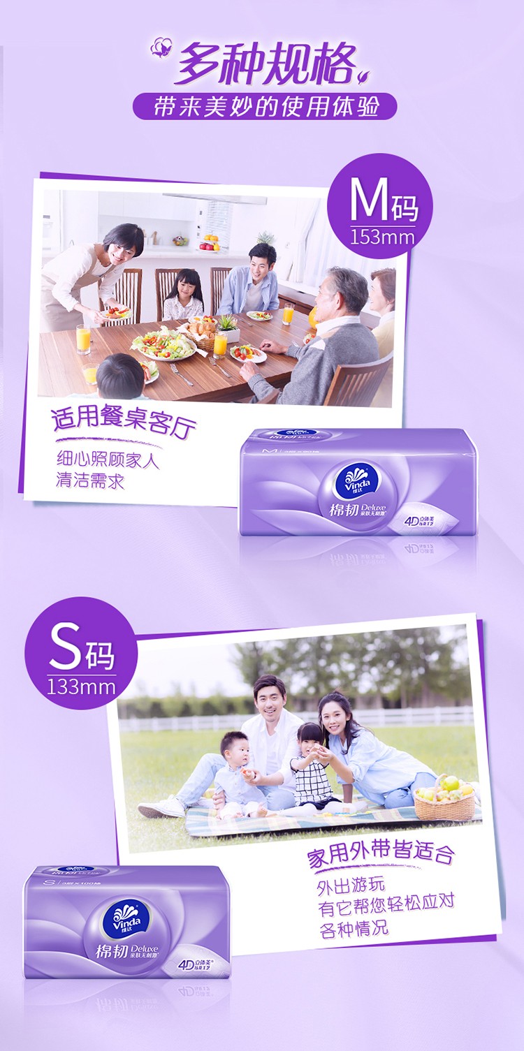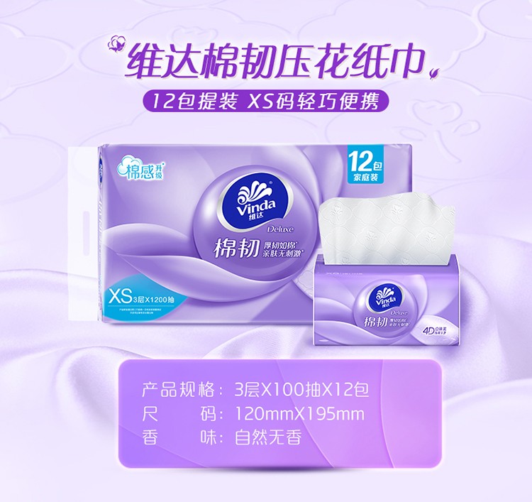 V2866维达棉韧抽取面巾3层XS码100抽×12包提