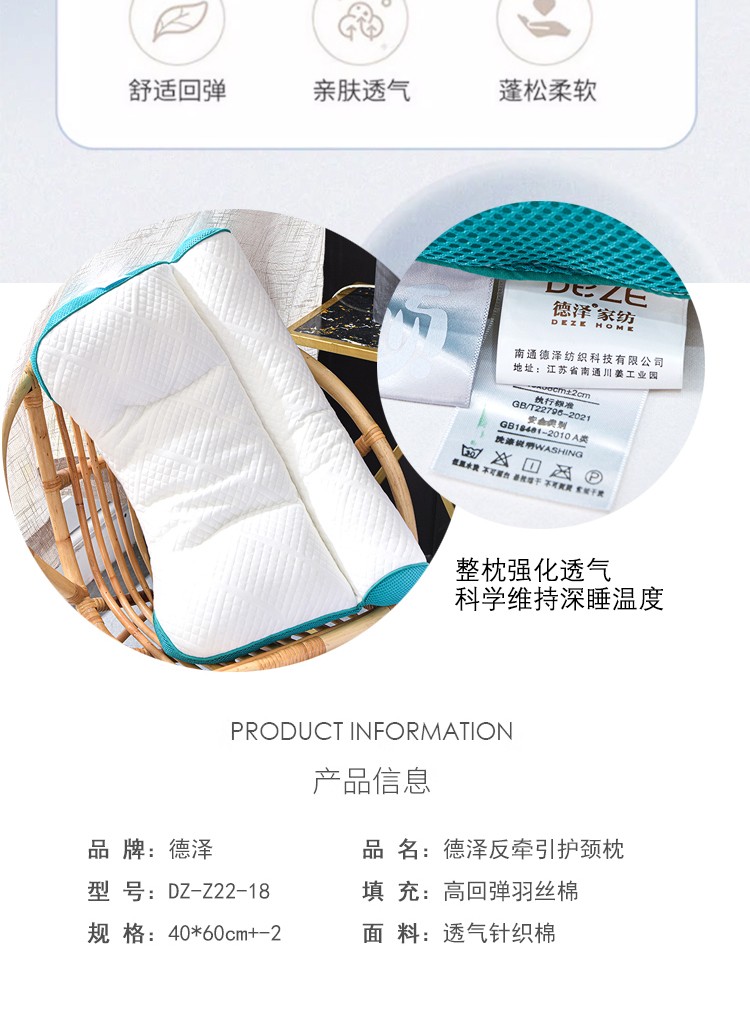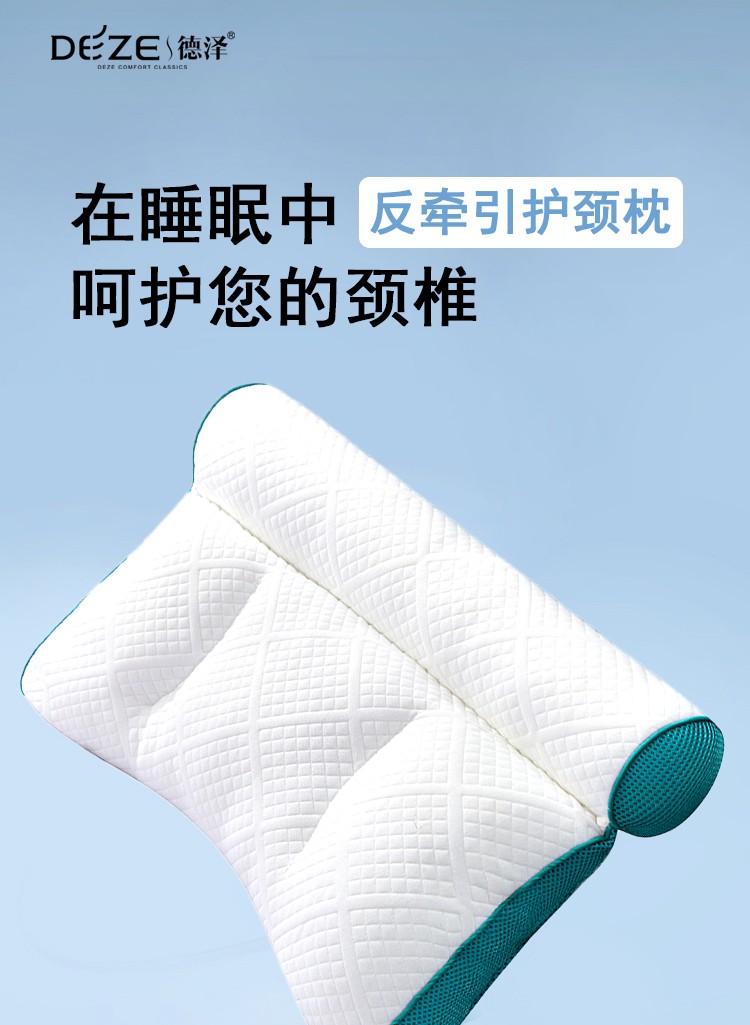 德泽反牵引护颈枕DZ-Z22-18枕头深度护颈枕睡眠颈椎枕反牵引颈椎病专用人体工学枕芯 单只装