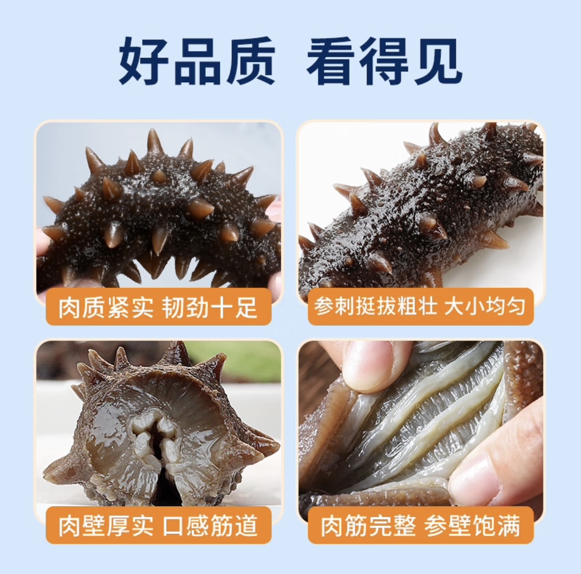 广滨堂 大连鲜食海参500g 8-12只 固形物80%以上袋装 简装