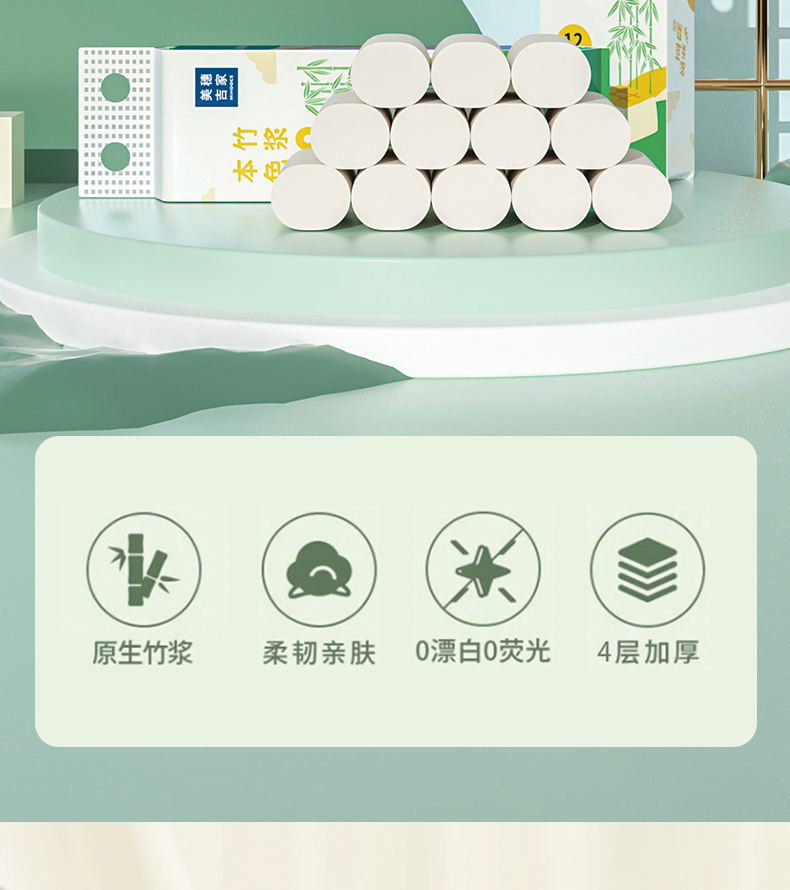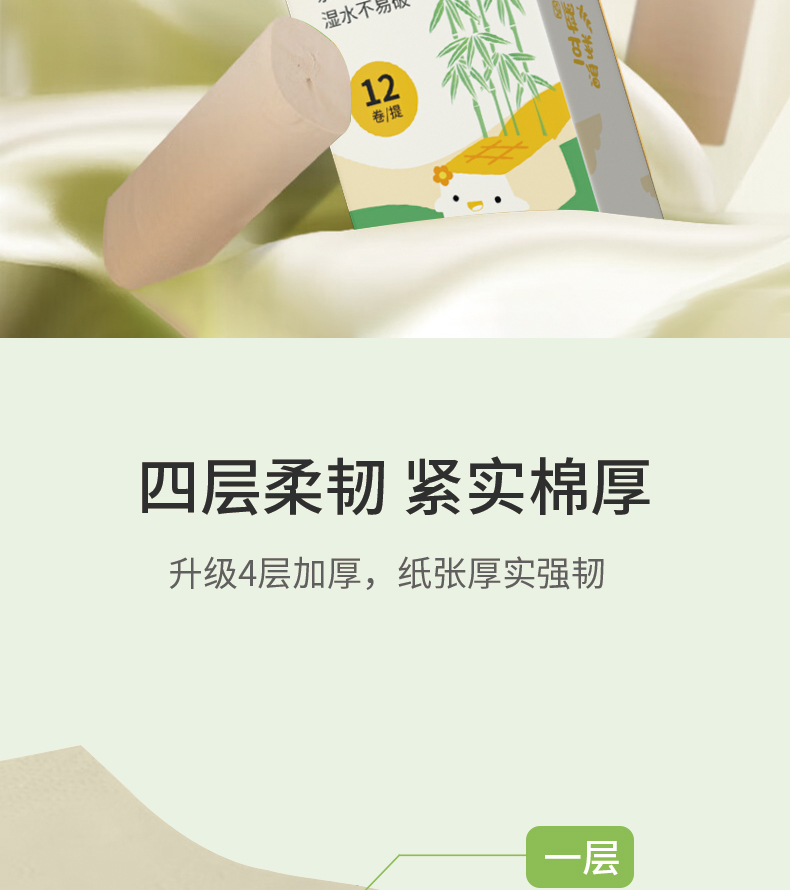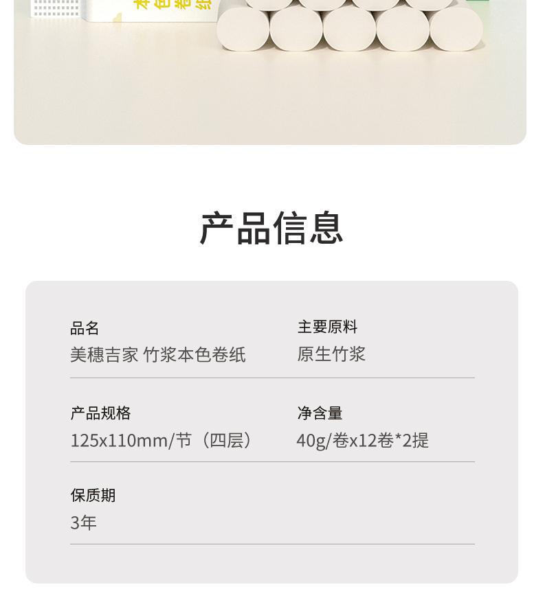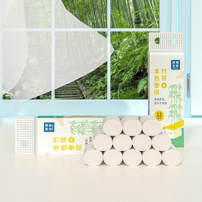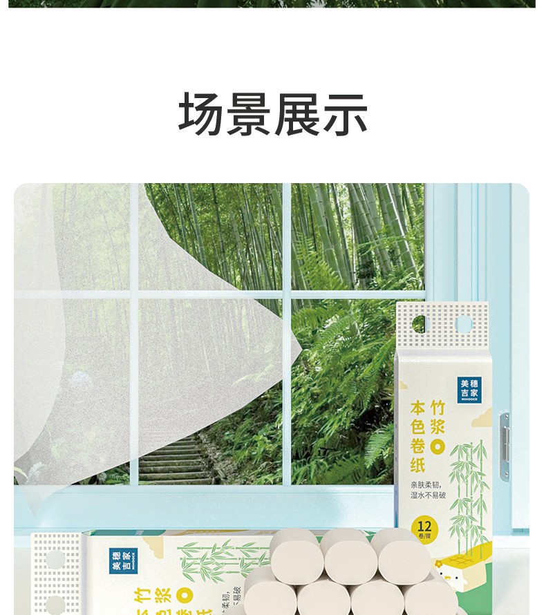 美穗吉家 本色竹浆卷纸 4层加厚 40g/卷*12卷*2提