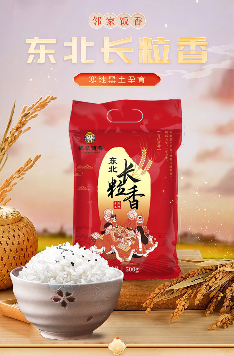 邻家饭香 东北大米 长粒香 500g/袋 非真空包装 LJFX13-C