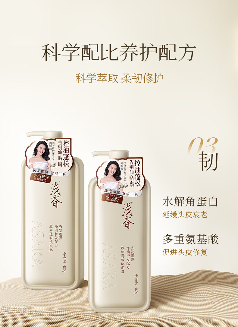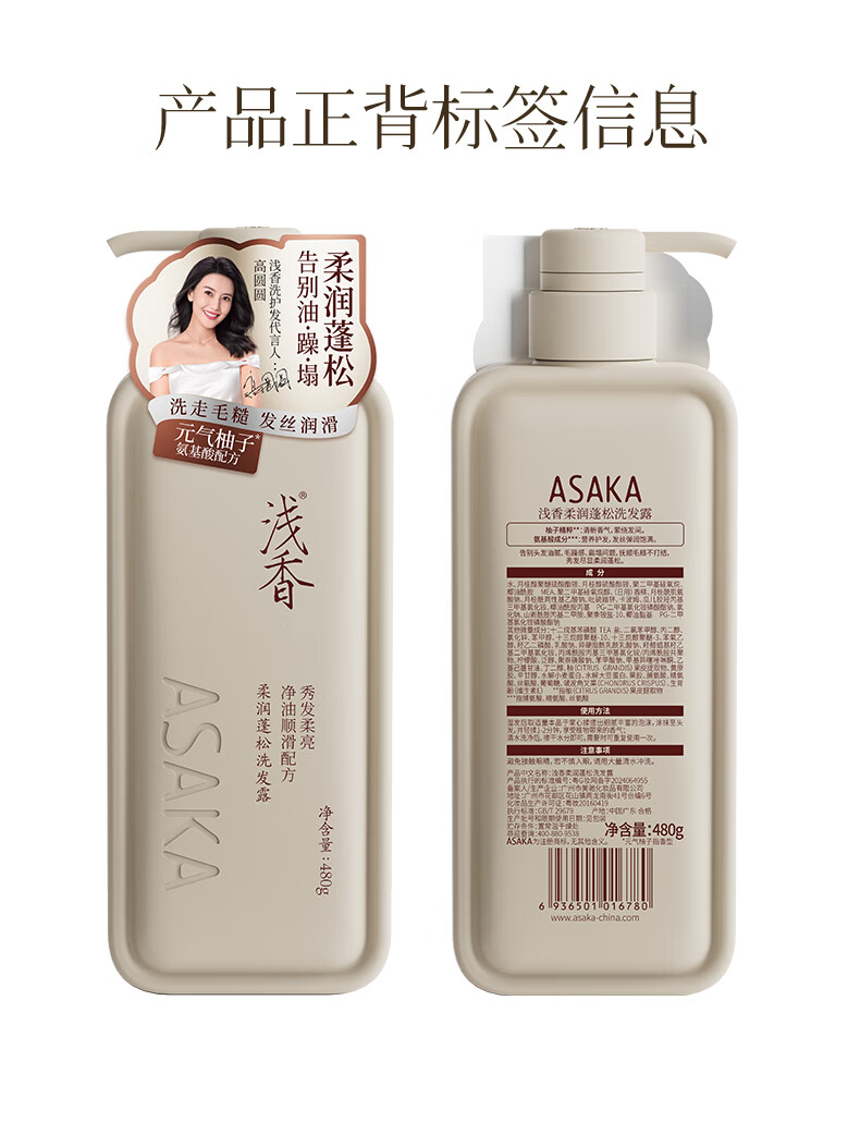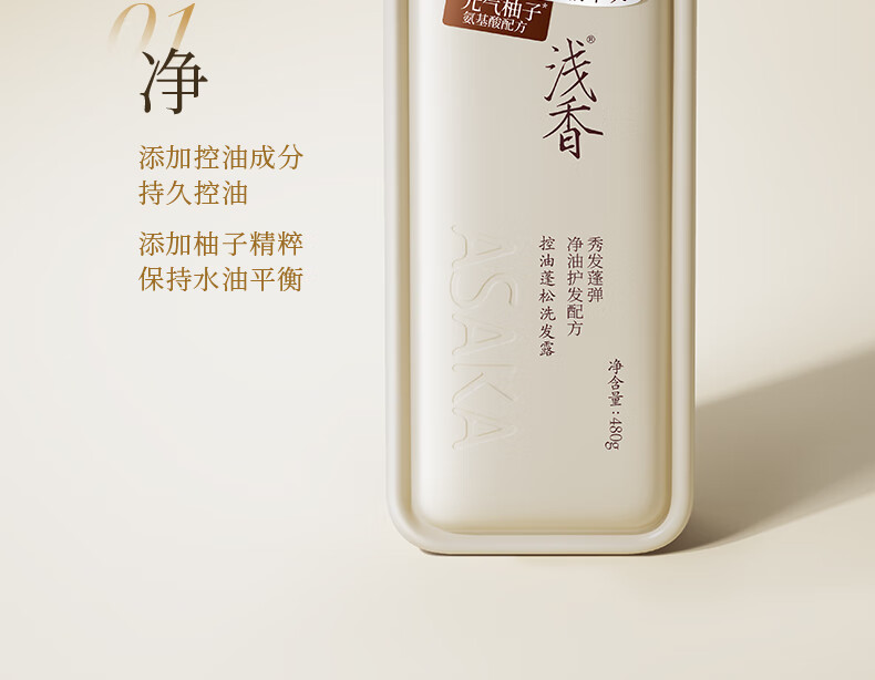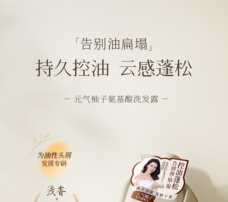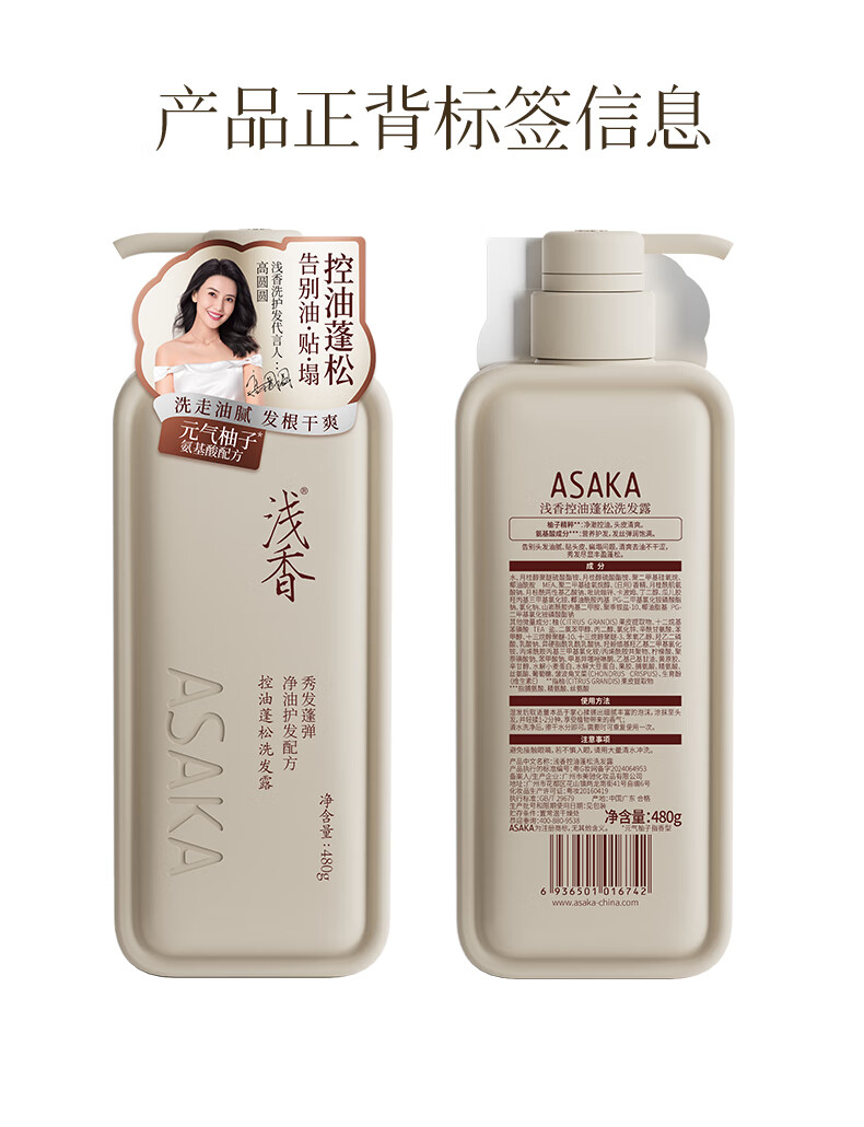 浅香元气柚子氨基酸洗发水 男女控油蓬松去屑柔顺持久留香洗头洗发水720g*1瓶