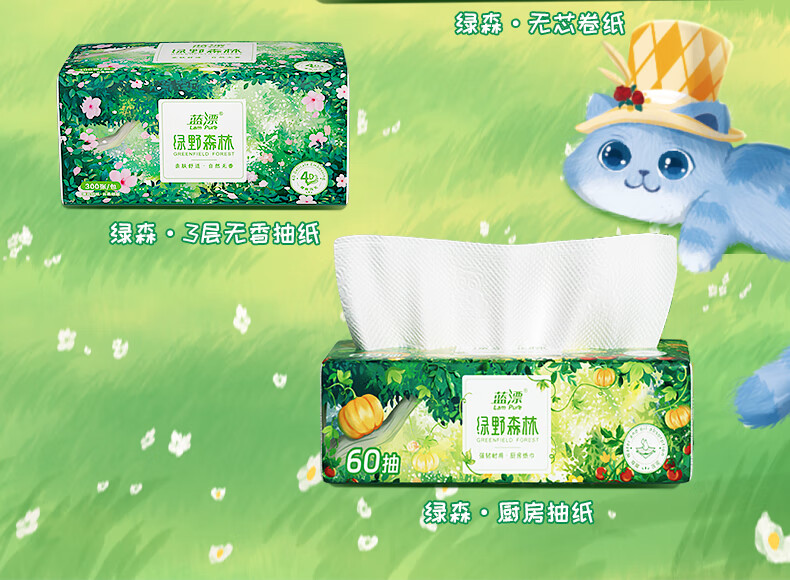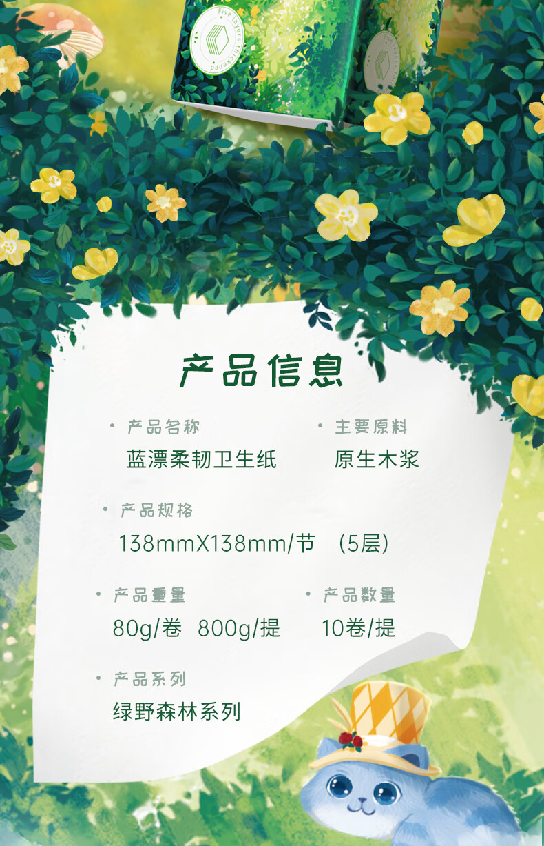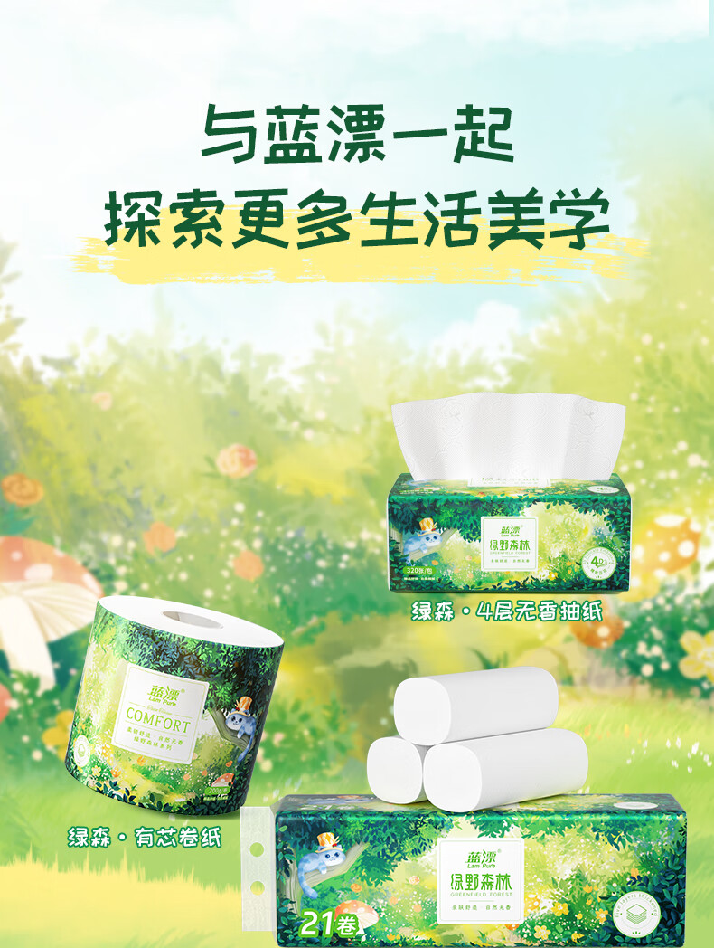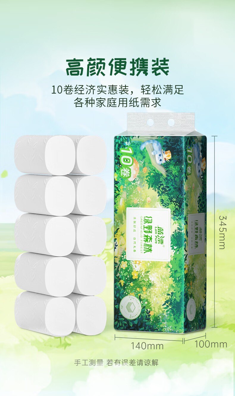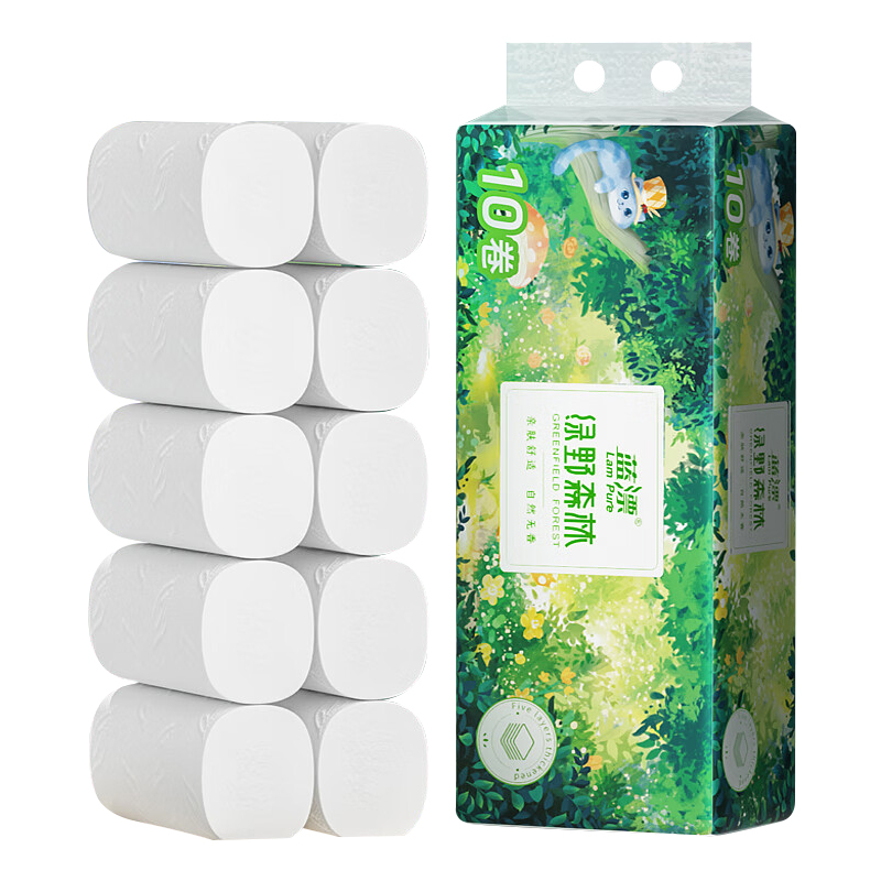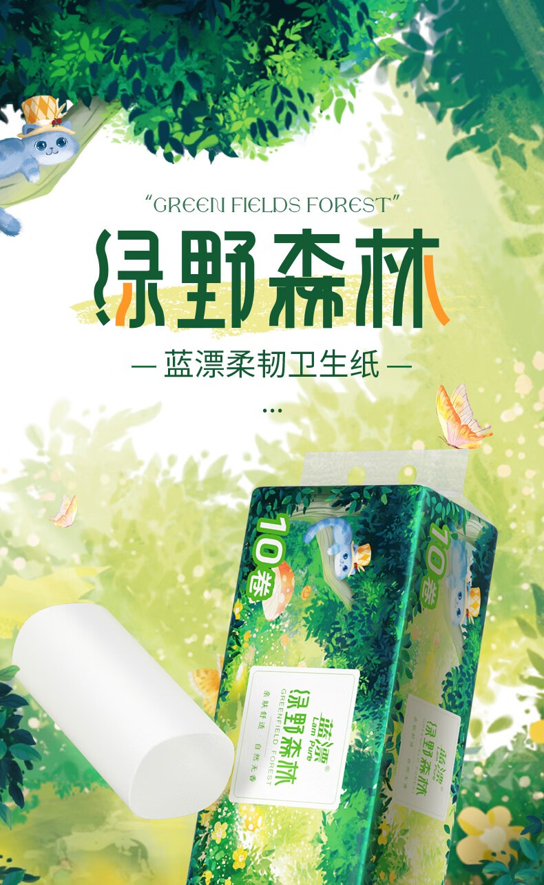 蓝漂绿野森林系列无芯卷纸10卷1.6斤/提装卫生纸巾擦手纸厕纸LP-42984白色扁卷30卷