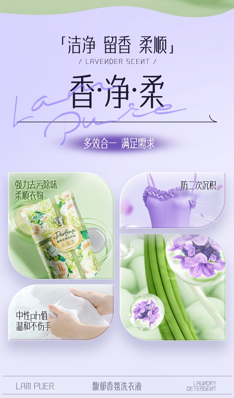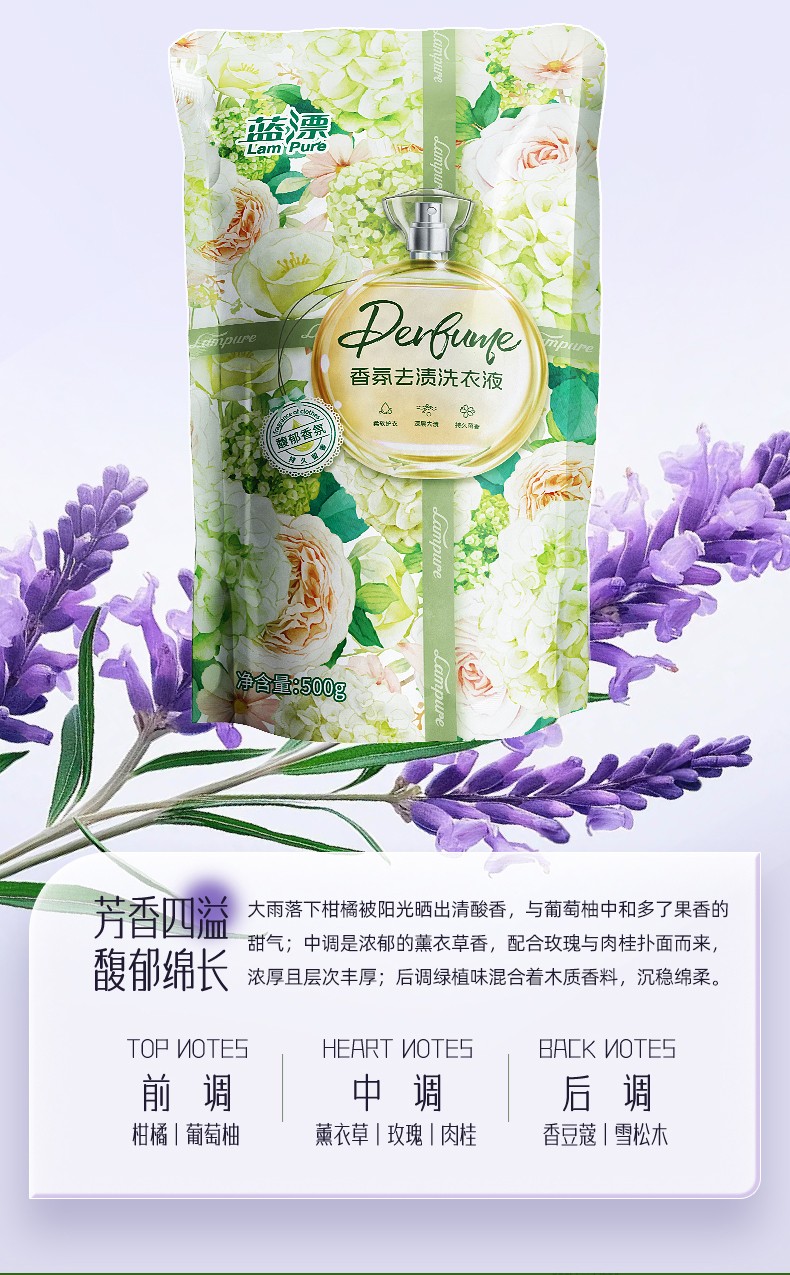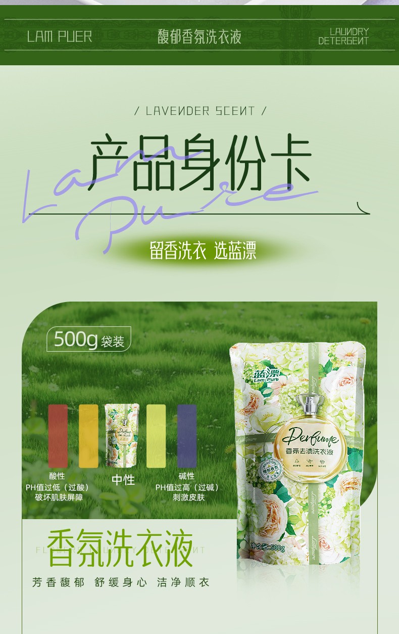 蓝漂繁花系列香氛洗衣液1斤袋装家用香味持久留香低泡香氛实惠装LP-372622蓝漂香氛去渍洗衣液500g-1袋装