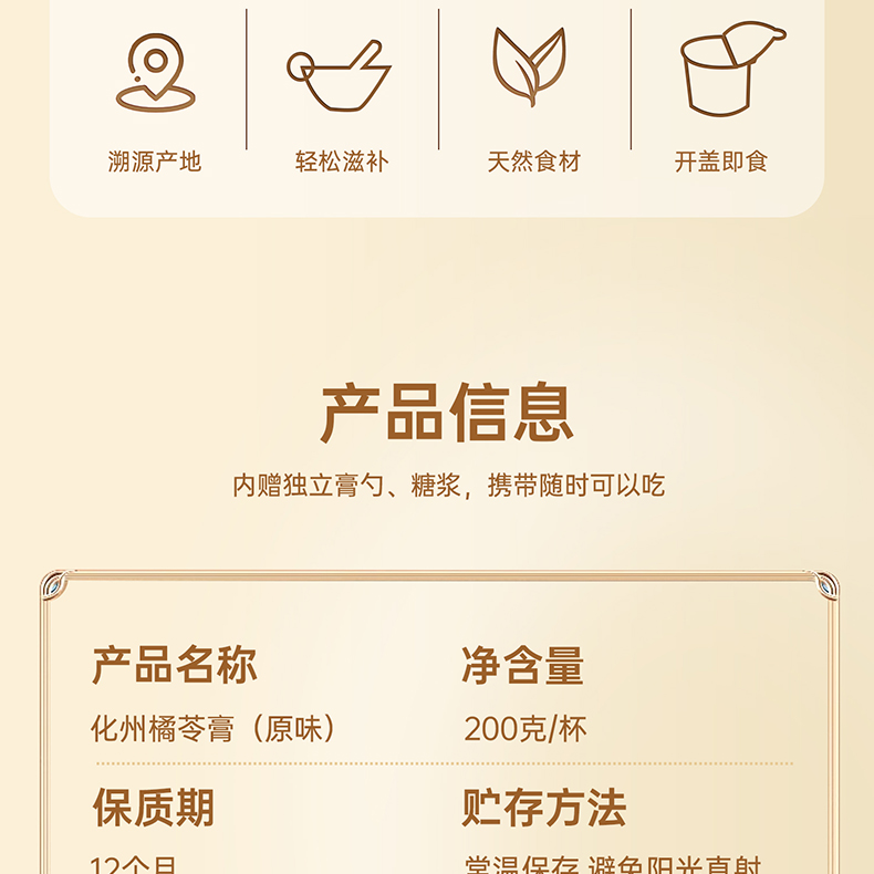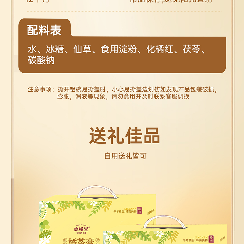 良橘堂正宗化州橘红橘苓膏夏日解暑仙草茯苓植物草本养生送礼佳品礼盒 【原味】橘苓膏200g*3