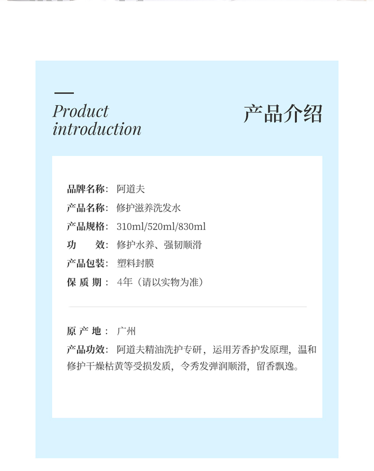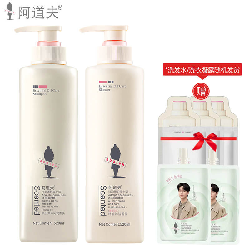 阿道夫洗发水沐浴露套装修护强韧洗发水520ml+青春记忆沐浴露520ml+50ml*2+10ml*6(赠品香型随机发)