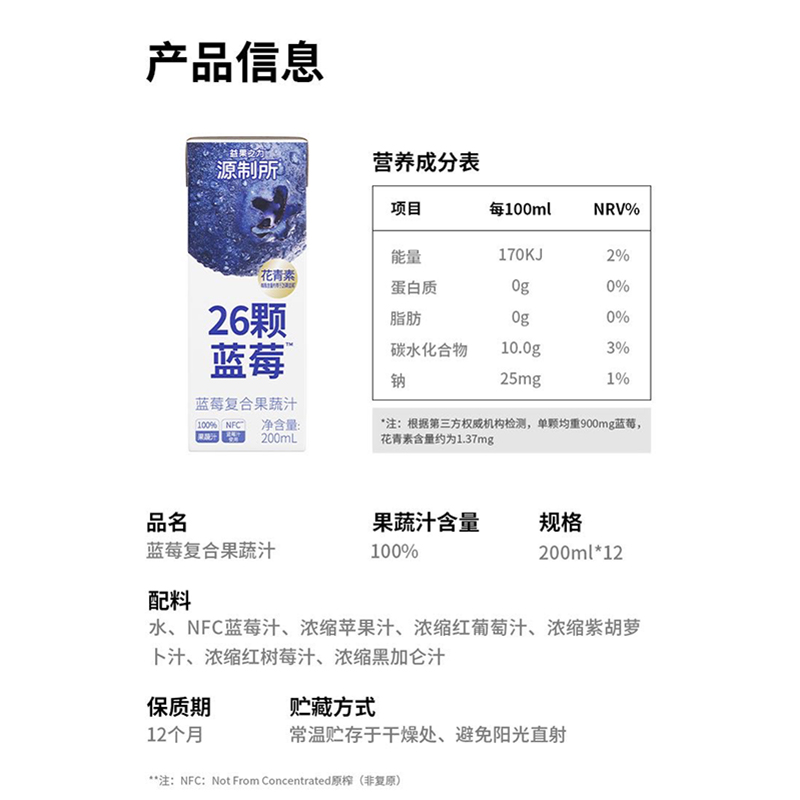 源制所蓝莓汁复合果汁礼盒200ml*12