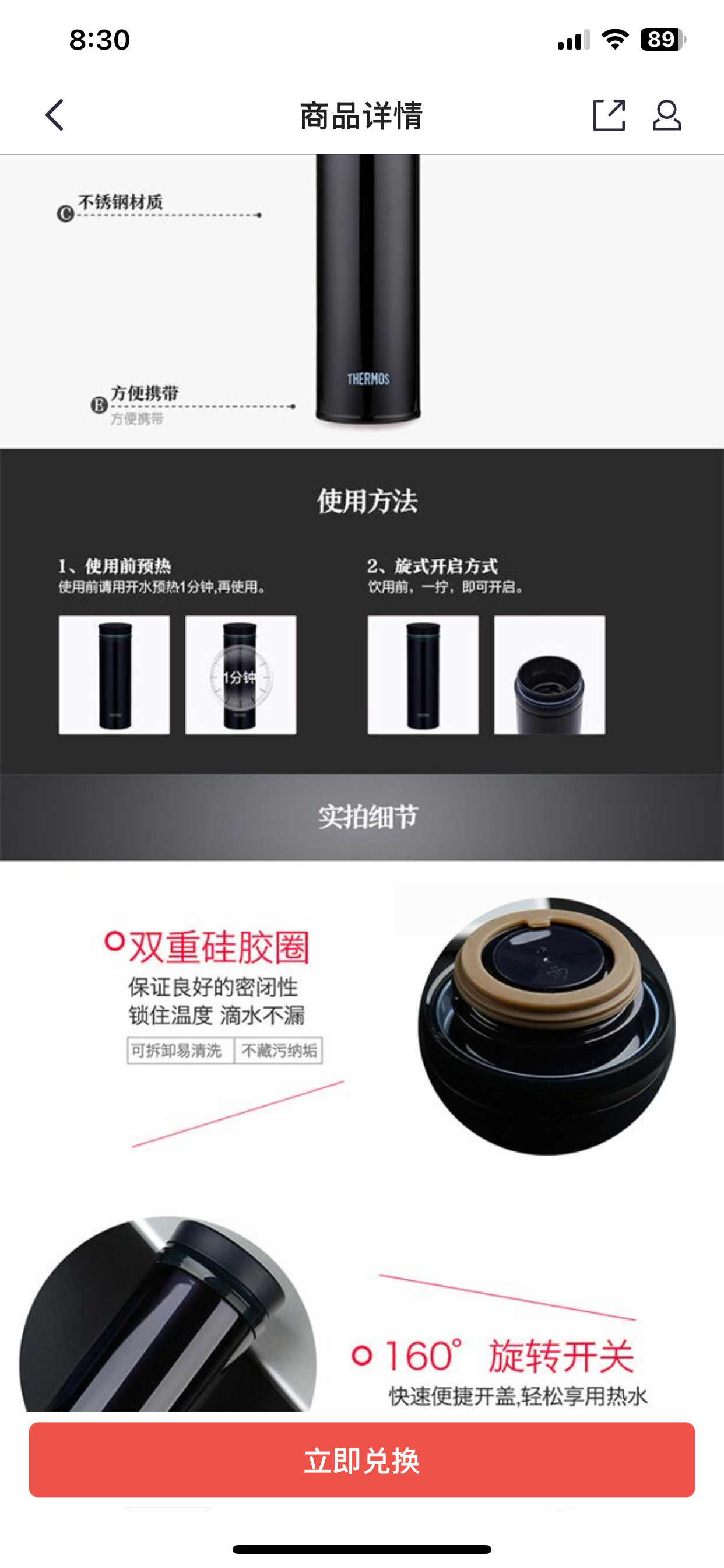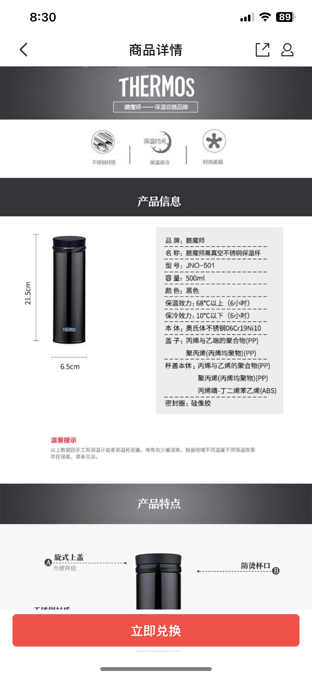 膳魔师高真空不锈钢保温杯JNO-501 500ml奥氏体不锈钢保温杯黑色