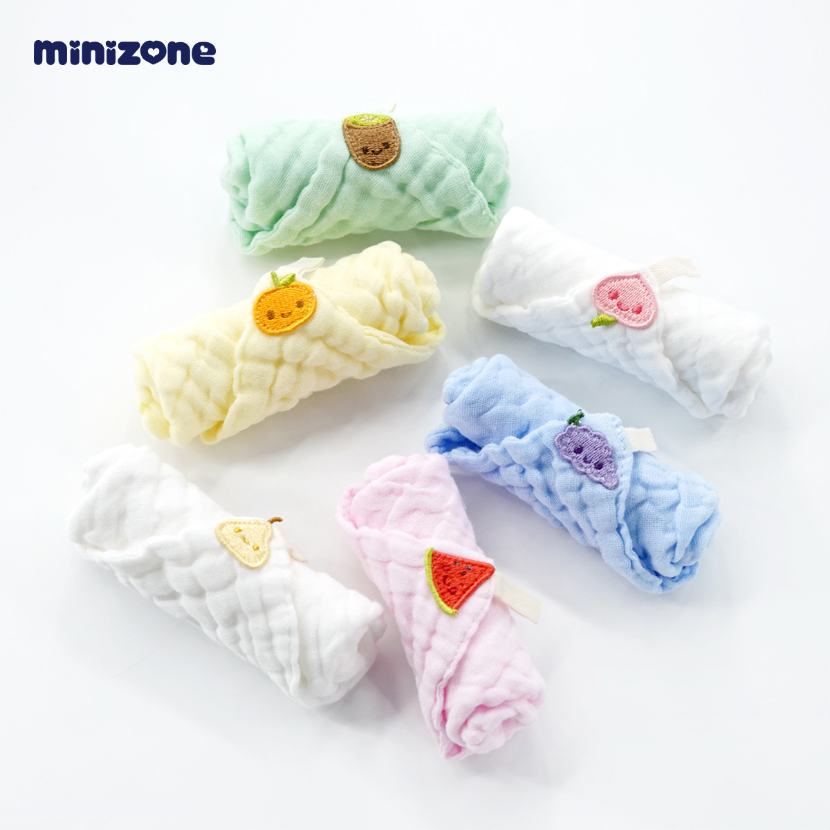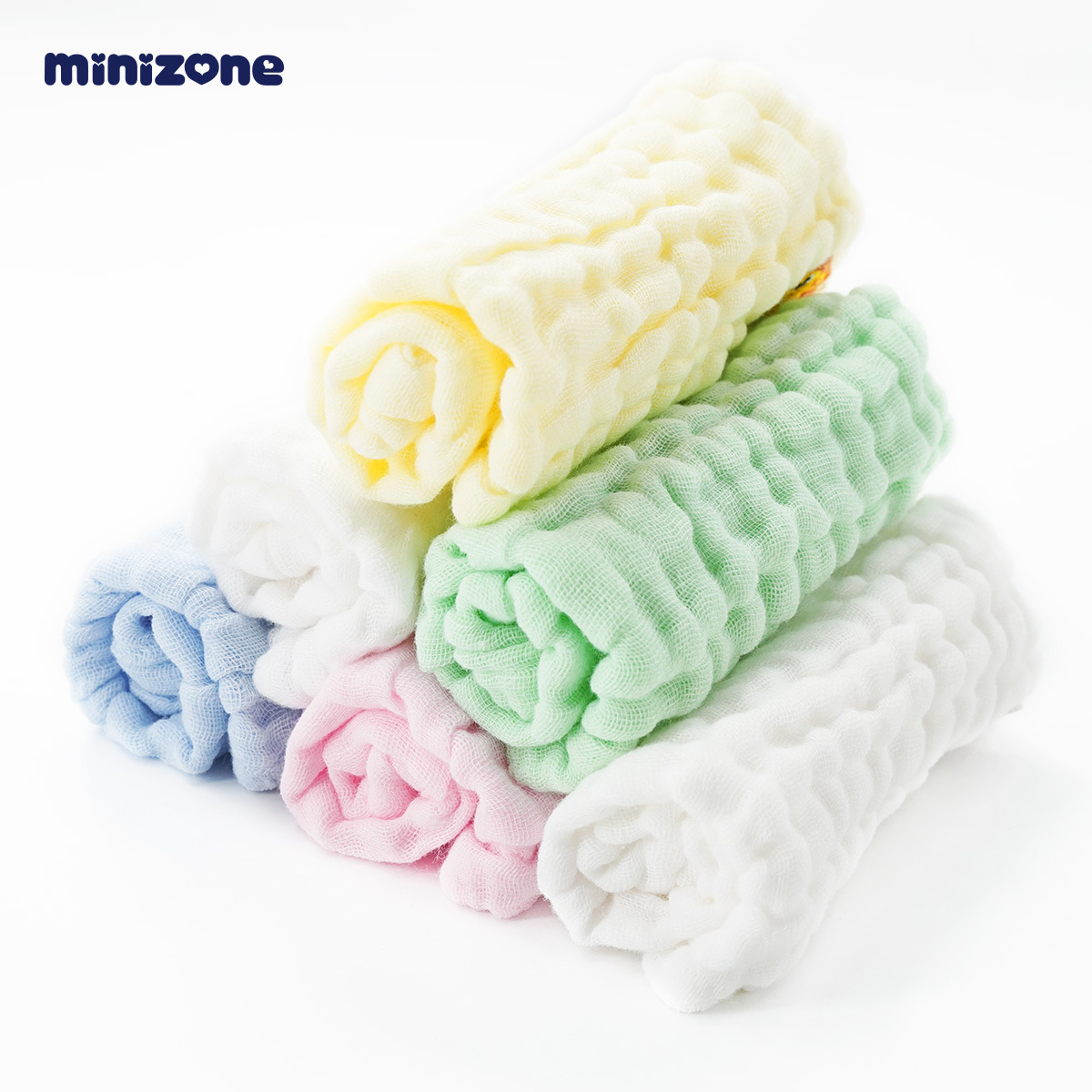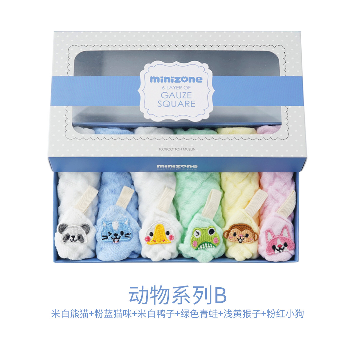 minizone婴儿纱布口水巾宝宝棉小方巾毛巾新生儿礼盒六件装儿童柔软手帕M2051