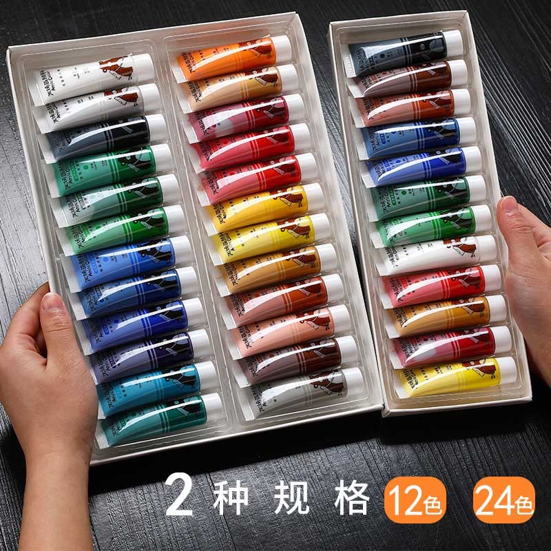 咔巴熊丙烯颜料石头染料画画不掉色材料12色24色36色手工儿童无毒防水炳稀盒装彩绘套装纺织diy手绘鞋子涂鸦绘画KBX-5111