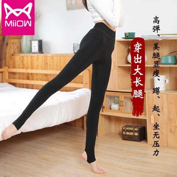 MiiOW/猫人秋冬打底裤女加绒外穿保暖薄绒光腿神器肉色连袜踩脚一体棉裤 MR8508