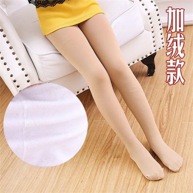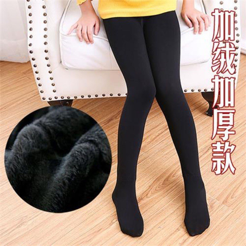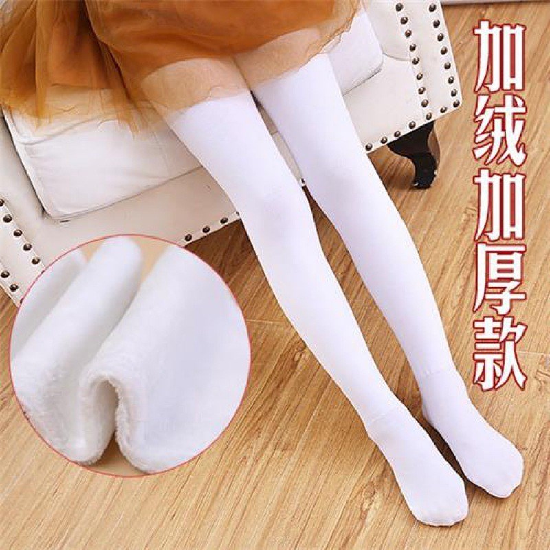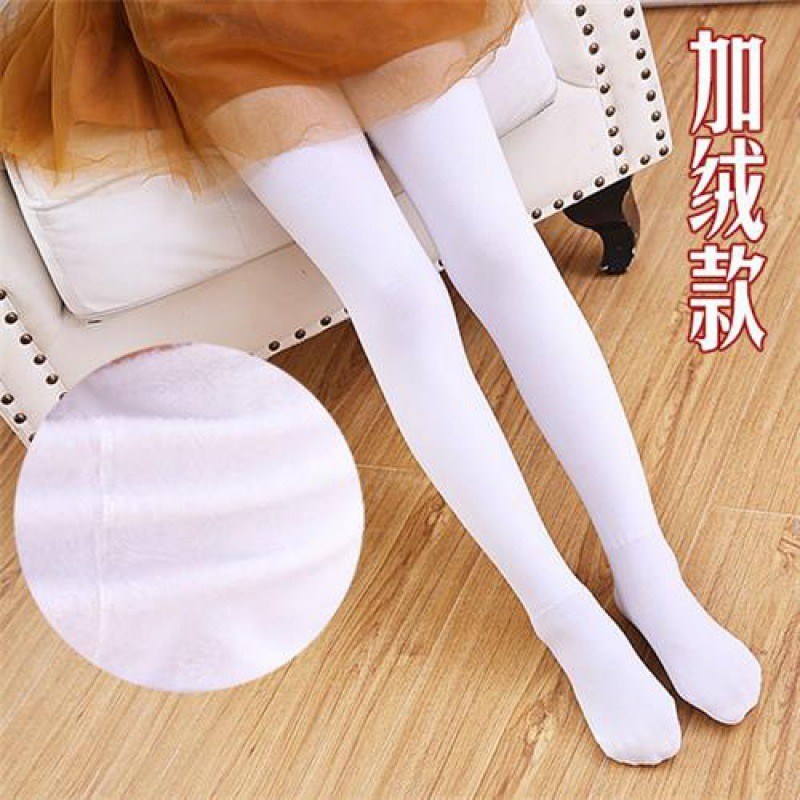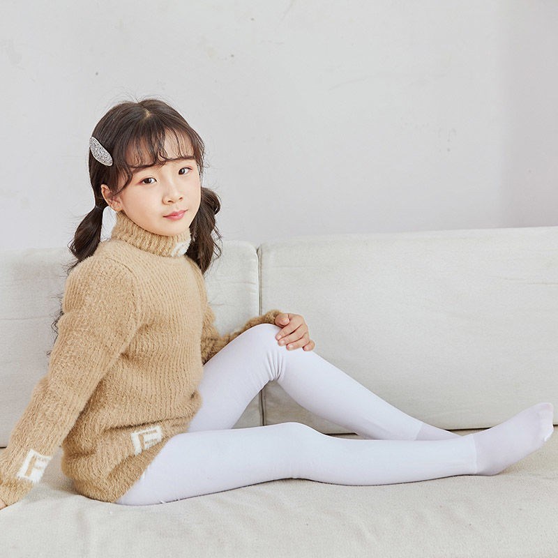 宝贝e族秋冬款女童打底裤 加薄绒白色舞蹈袜 踩脚超柔不倒绒一体裤 WZ888
