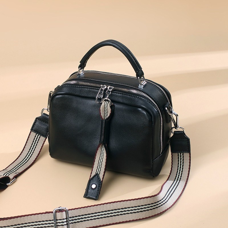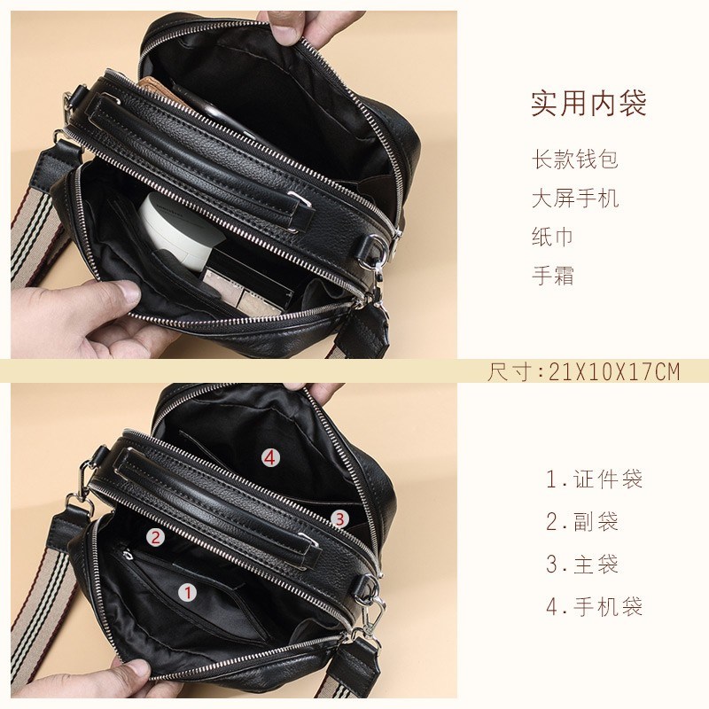 venera温尼啦 真皮小包包宽带斜挎包时尚头层牛皮多层女包小方包U209401