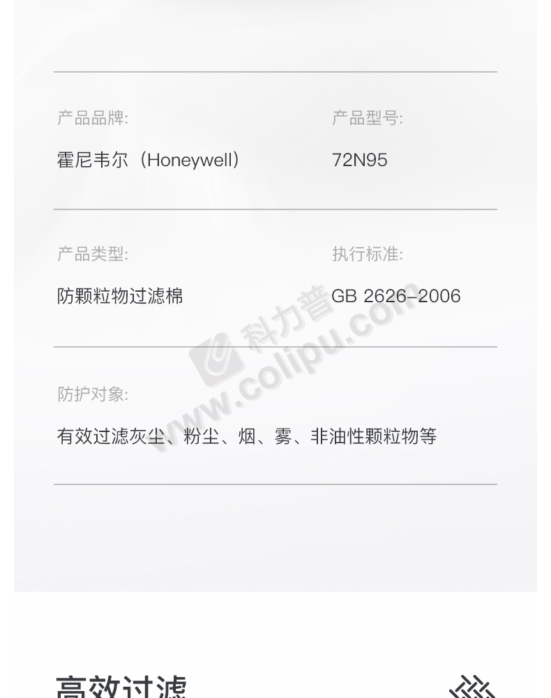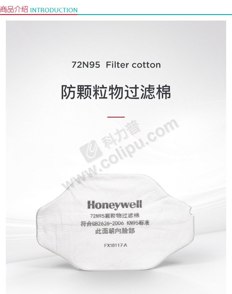 霍尼韦尔 honeywell 防尘滤棉 72N95 5片/包,50片/袋 (用于7200防尘半面罩)
