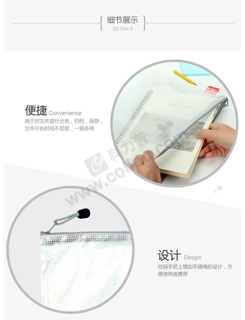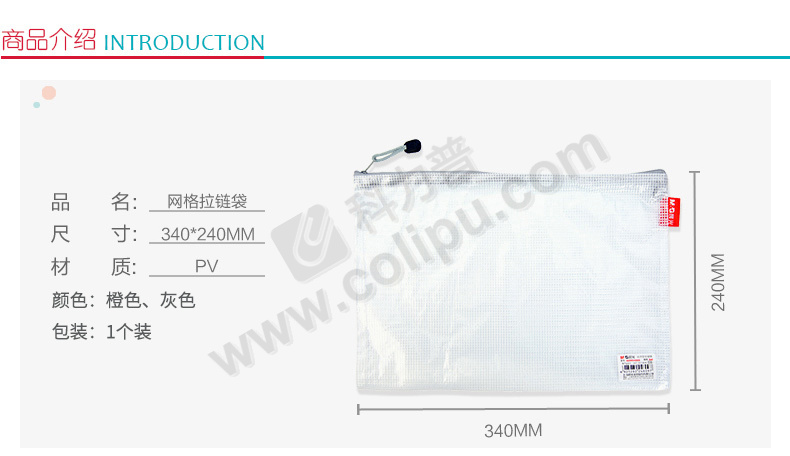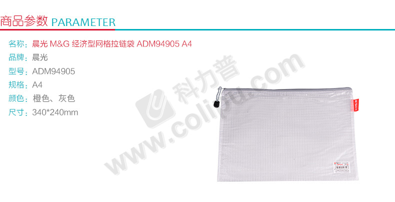 晨光 M&G 经济型网格拉链袋 ADM94905 A4 (橙色、灰色) (颜色随机)