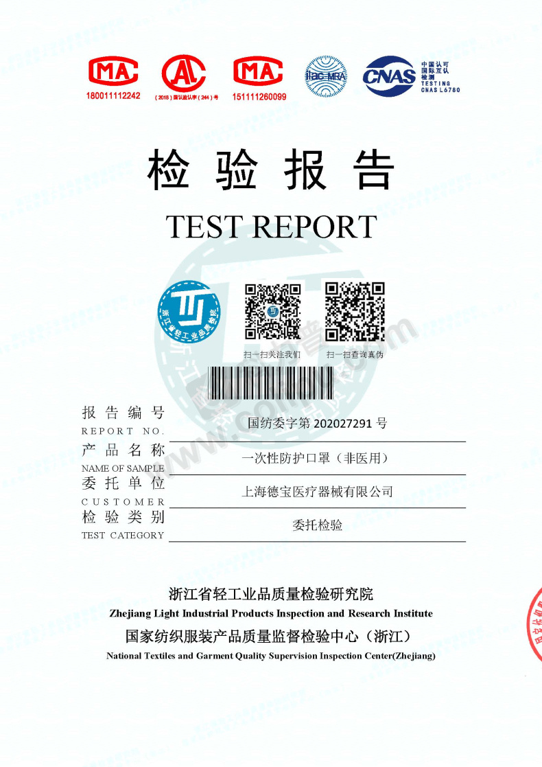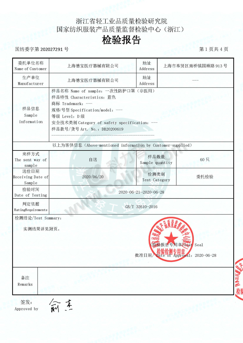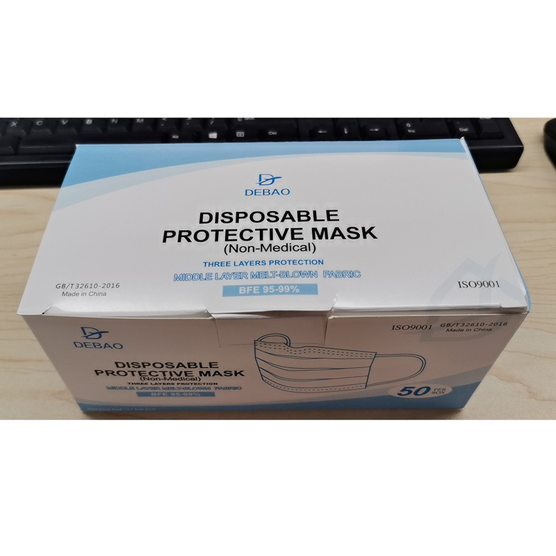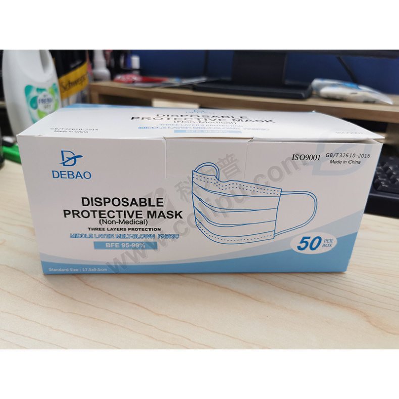 Debao 德宝 一次性防护口罩 (蓝色) 50个/盒 40盒/箱 (非医用)