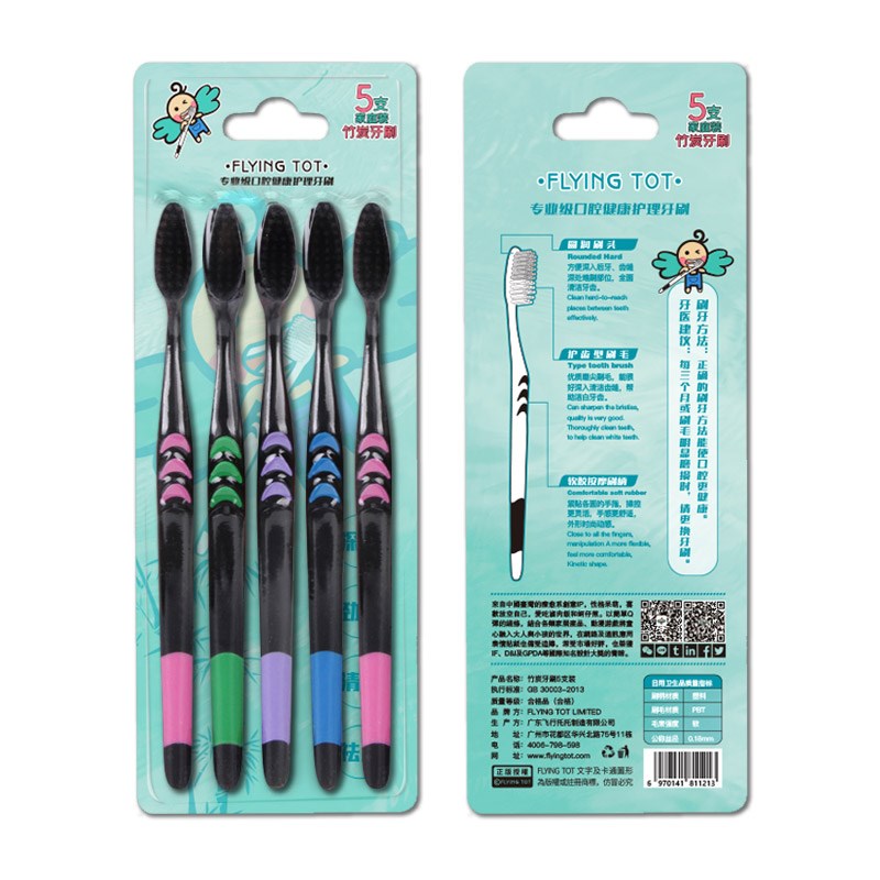 FLYING TOT飞行托托竹炭牙刷5支装J2005 90x20x140mm