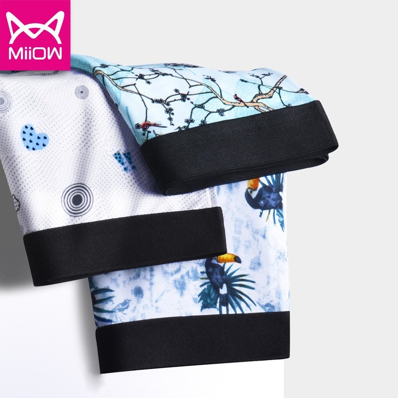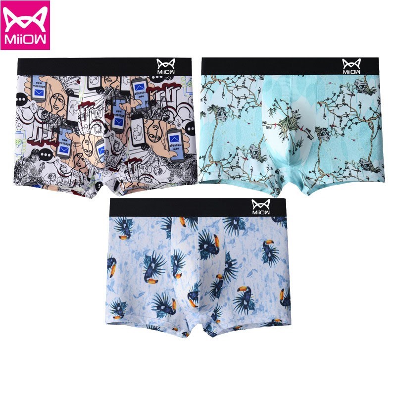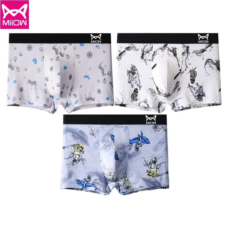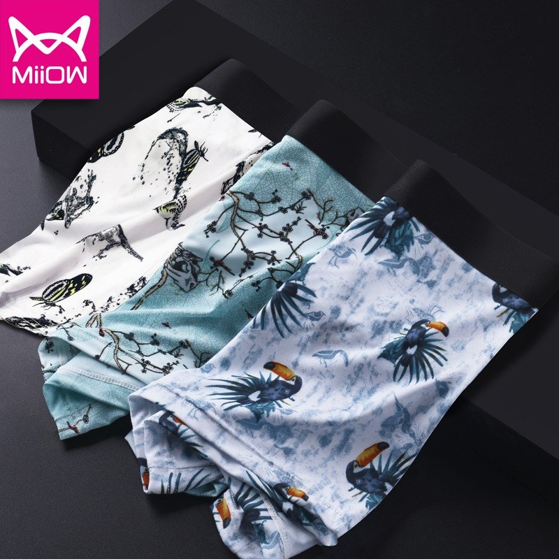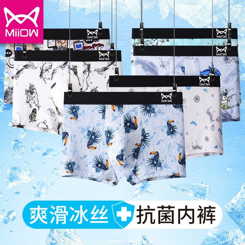 MiiOW/猫人爽滑冰丝男士内裤印花抗菌透气平角裤3条装1950