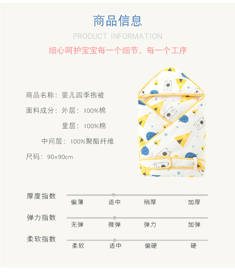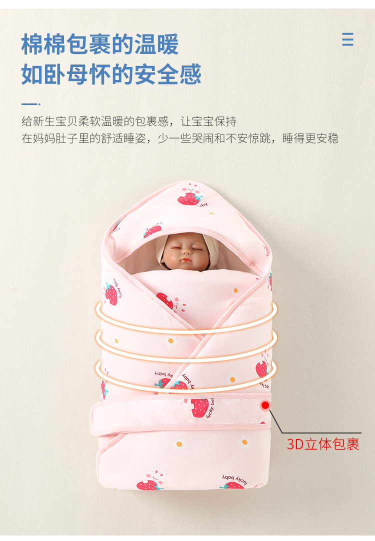 Honeyson婴儿抱被初生婴儿秋冬纯棉加厚被子新生儿产房恒温盖毯B001