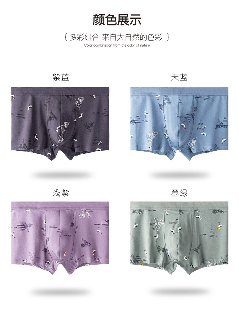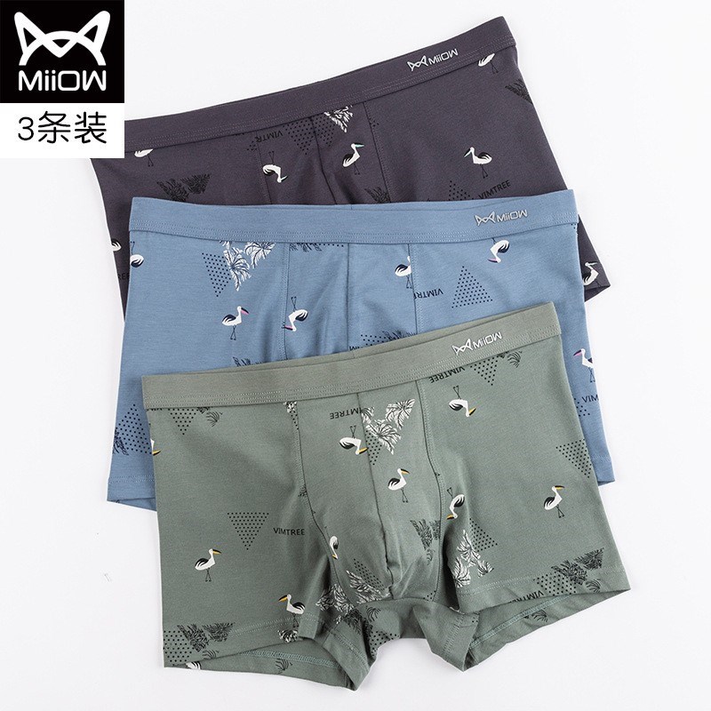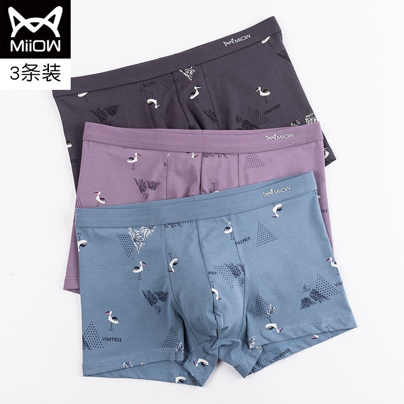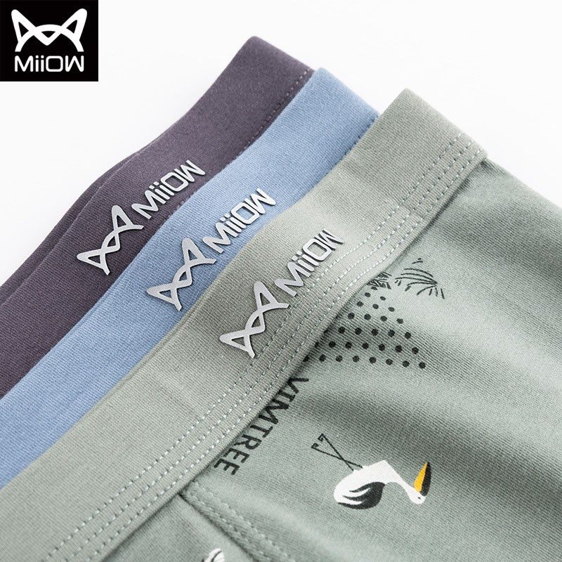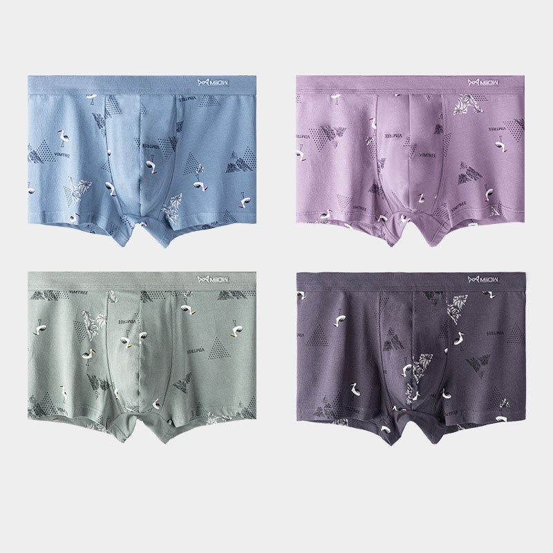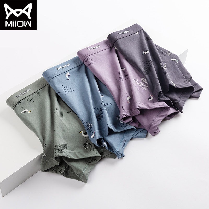 MiiOW/猫人男士平角内裤棉质4条装高弹亲肤吸汗印花艾草抗菌加宽弹力腰带80518