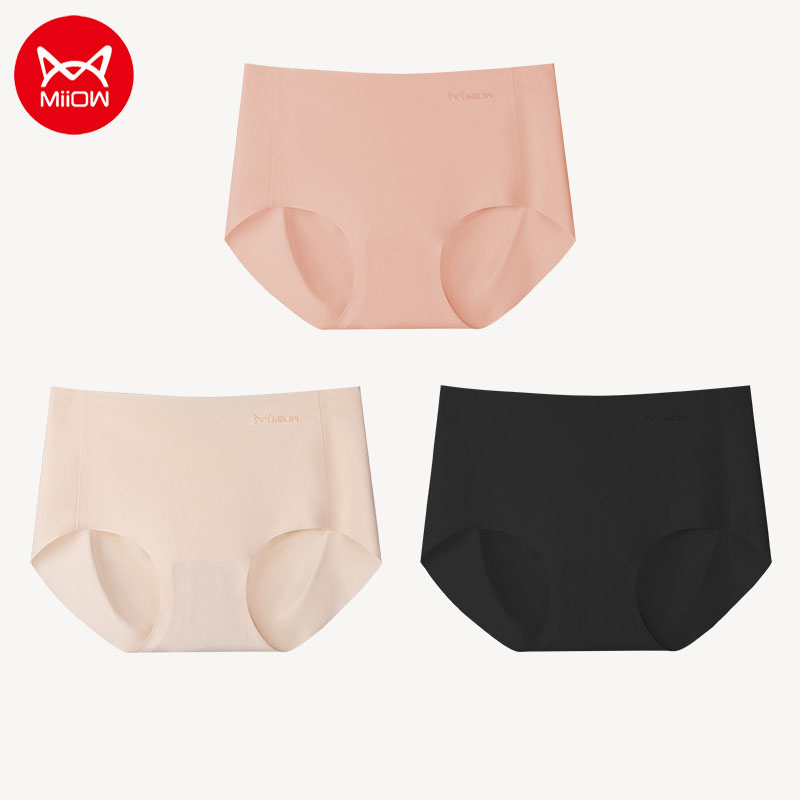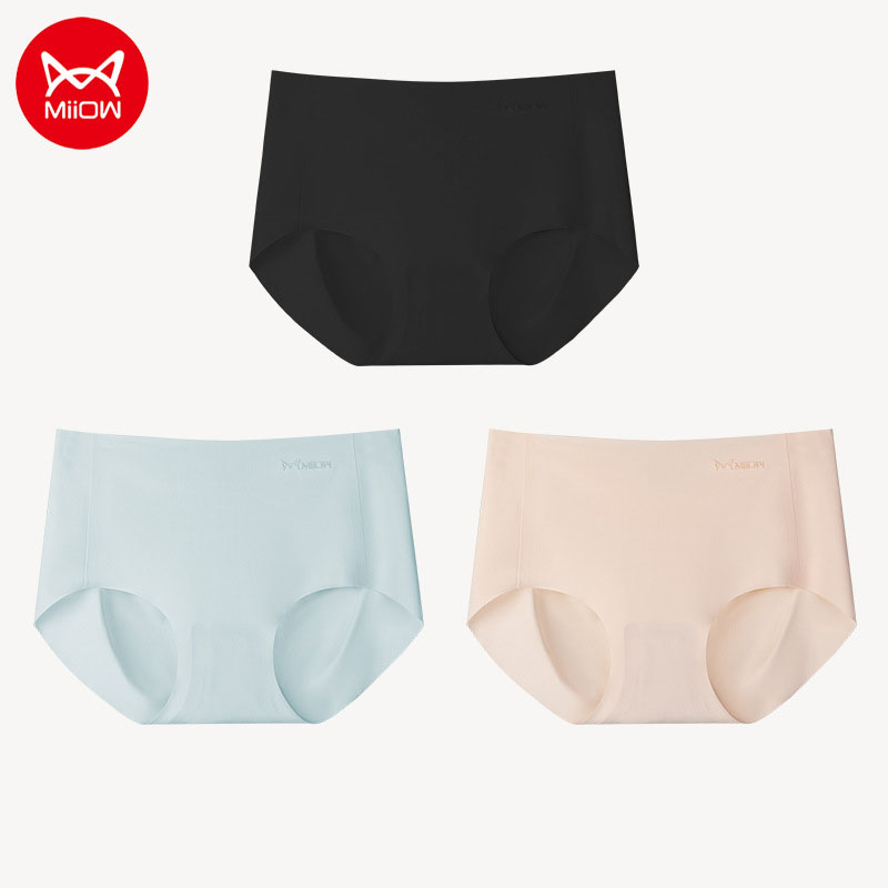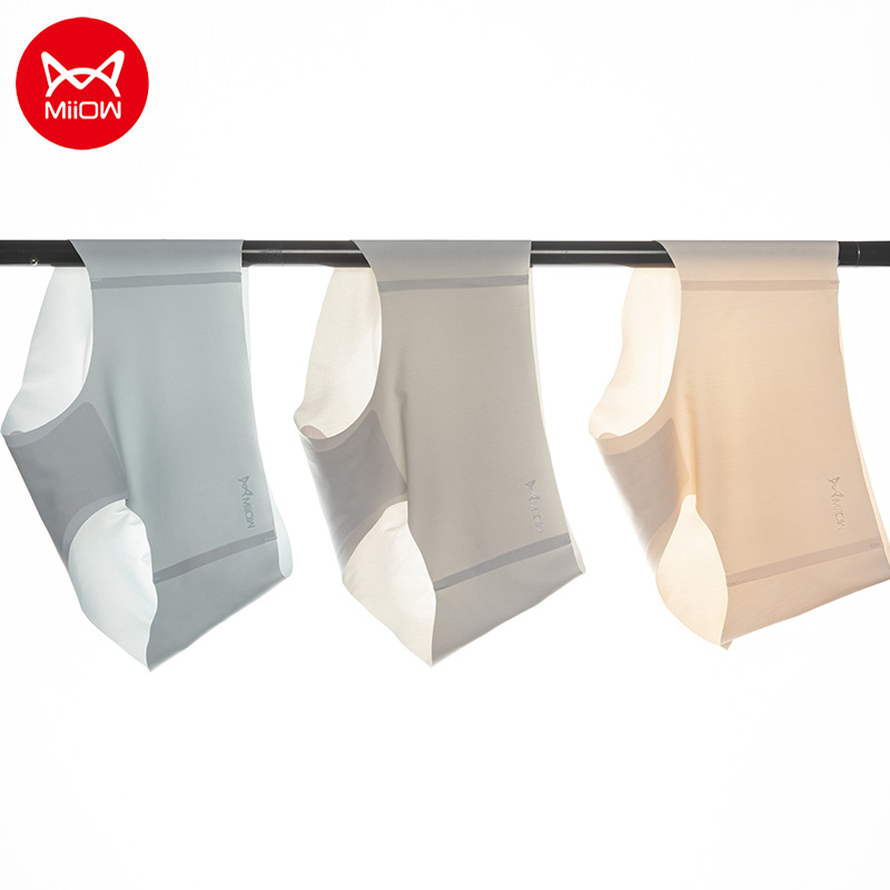 MiiOW/猫人冰丝内裤女士无痕纯棉裆抗菌少女纯欲夏季薄款收腹大码三角裤潮JC3366