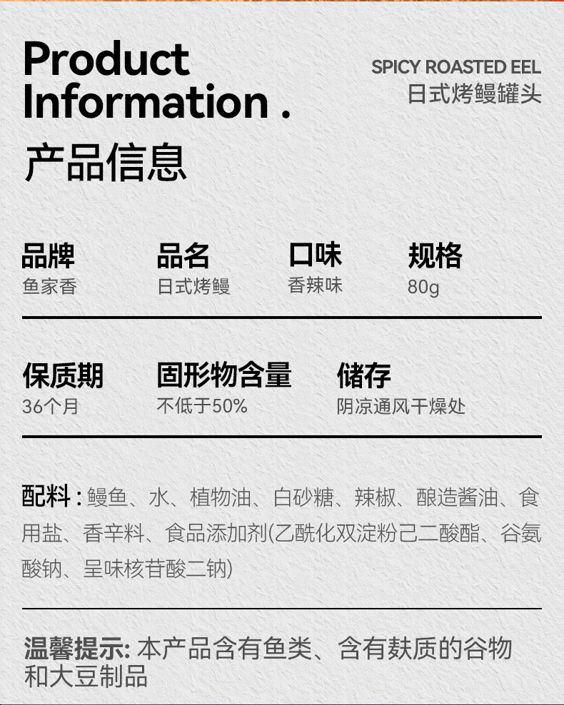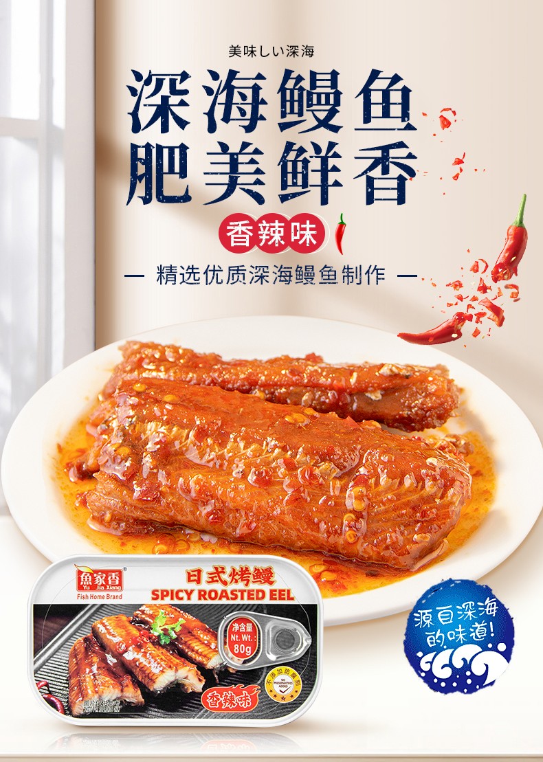 鱼家香日式烤鳗香辣味80克*6罐鱼罐头佐饭酱拌面酱肉酱