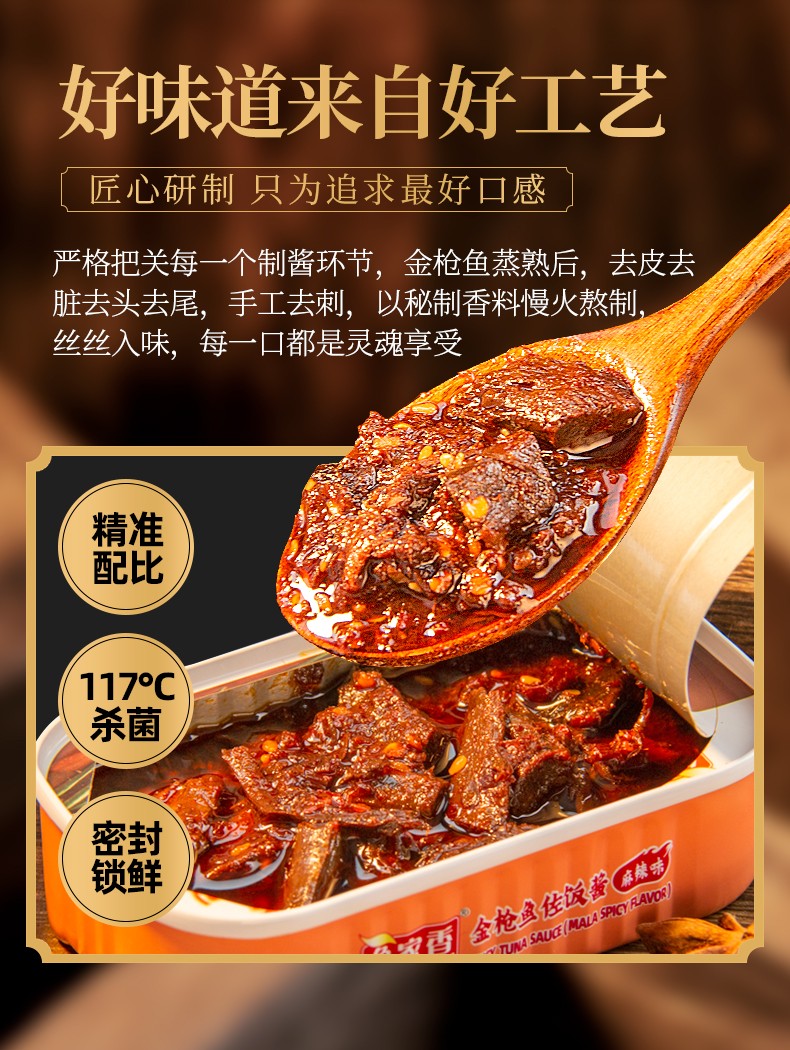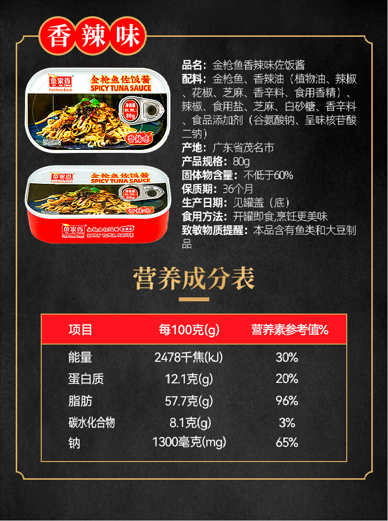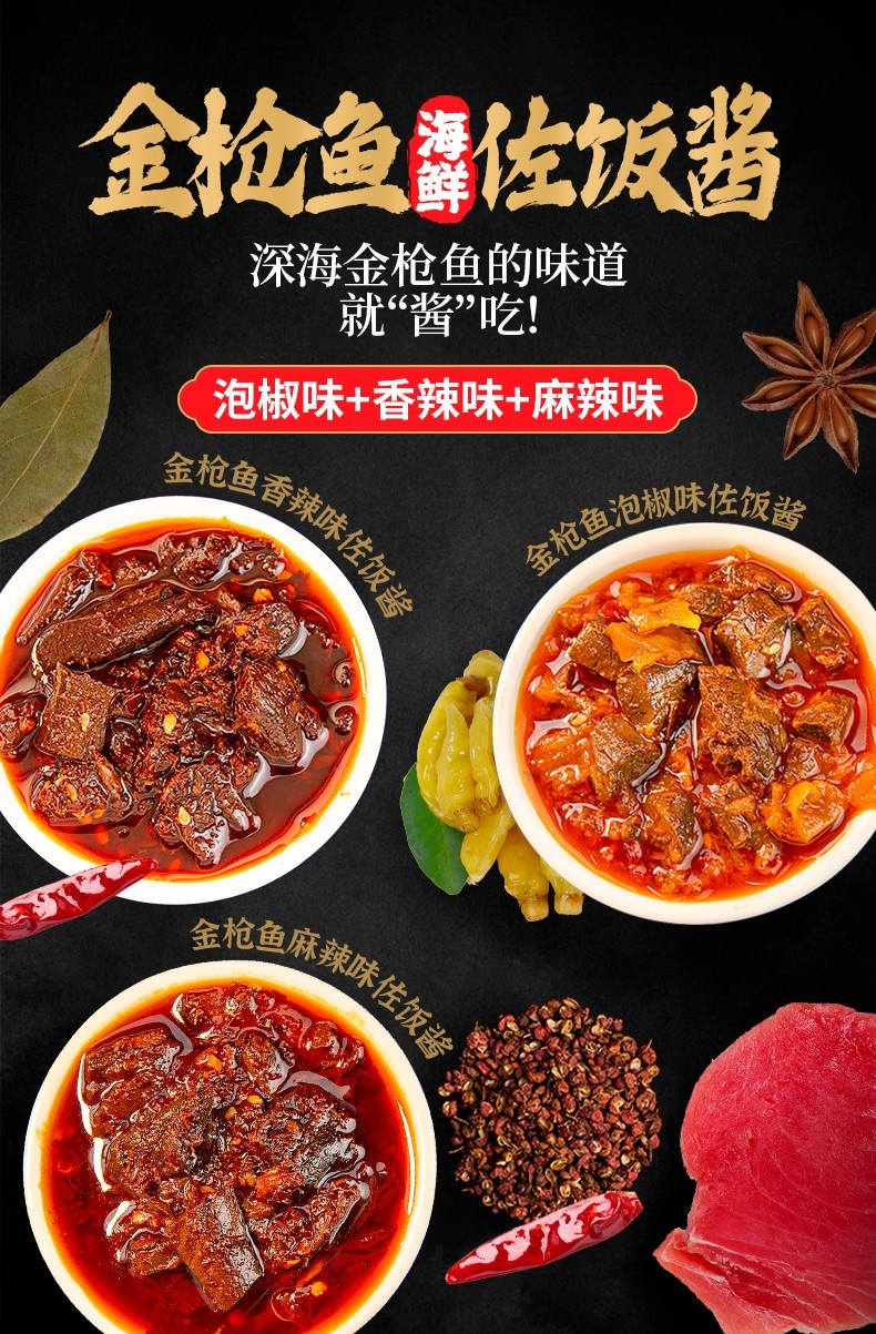 鱼家香金枪鱼泡椒味80克*3罐鱼罐头佐饭酱拌面酱肉酱