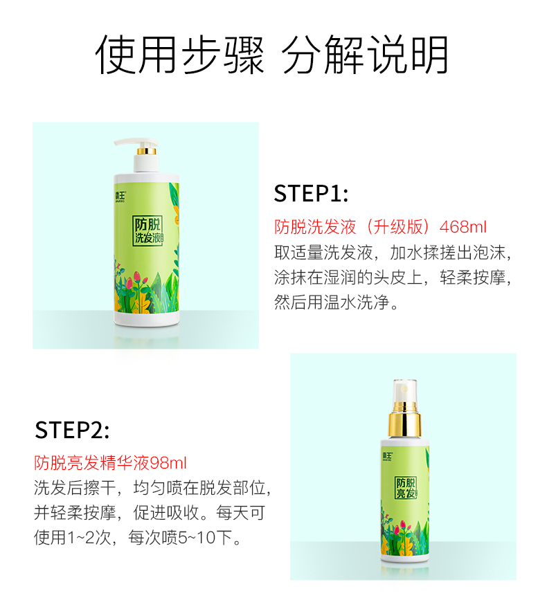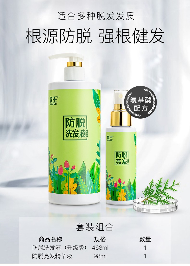 霸王防脱洗发液(升级版)468ml+防脱亮发精华液套装98ml