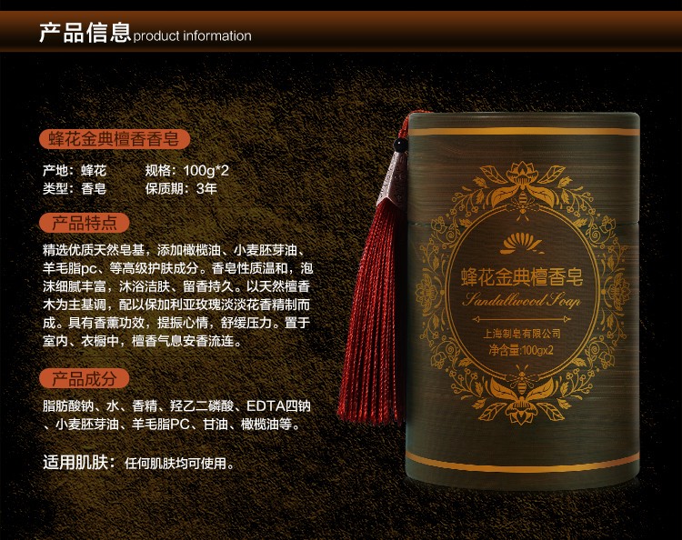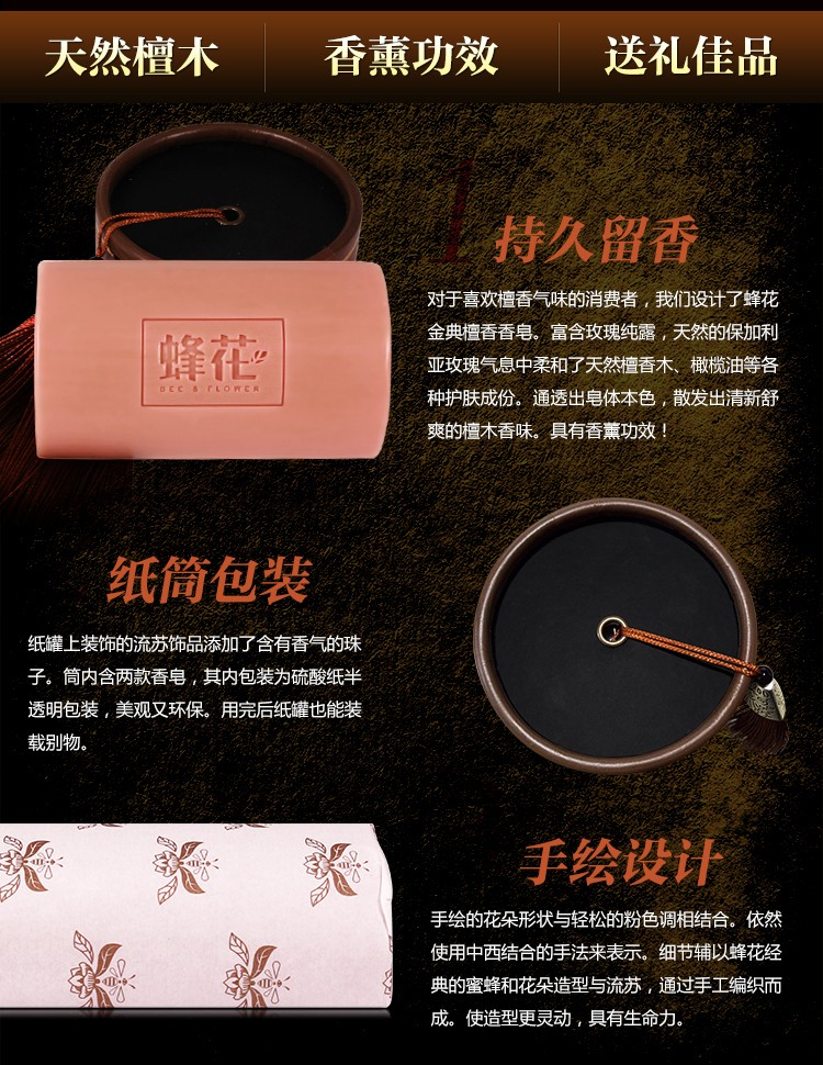 蜂花金典檀香皂100克/块*2块保湿滋润沐浴洗手长久留香男女通用