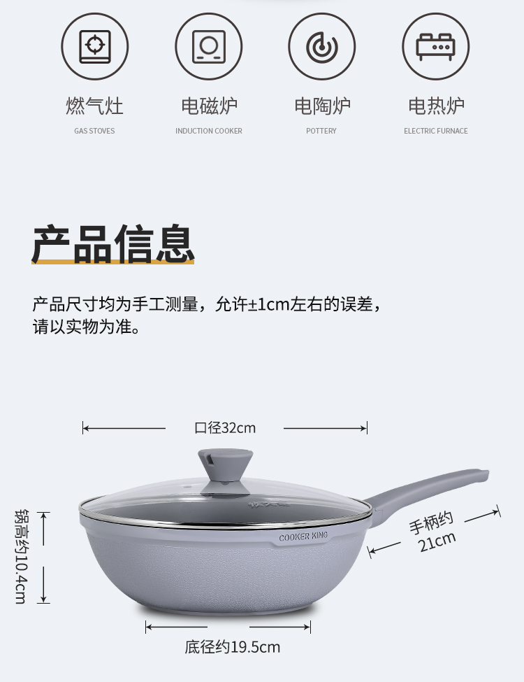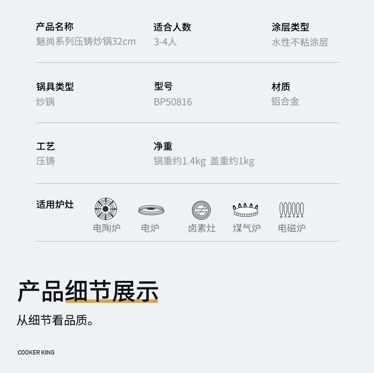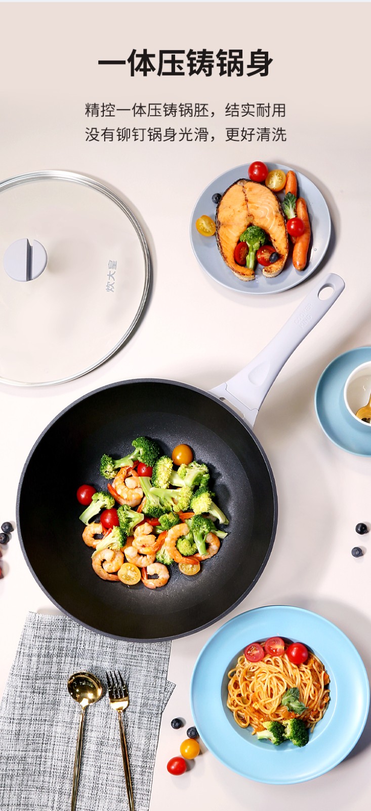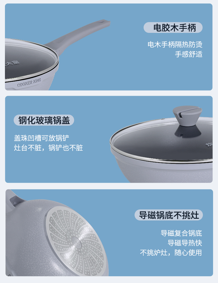 炊大皇魅尚系列压铸炒锅灰珍珠色BP50816