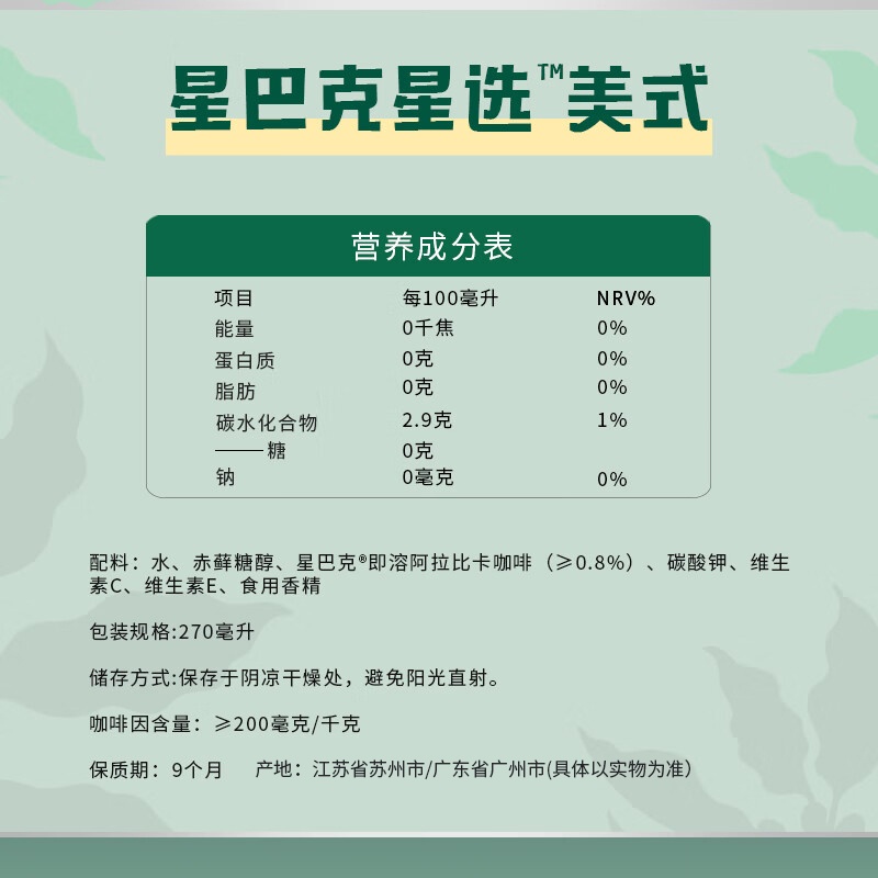 星巴克星选美式咖啡饮料 270ml*6瓶*2组