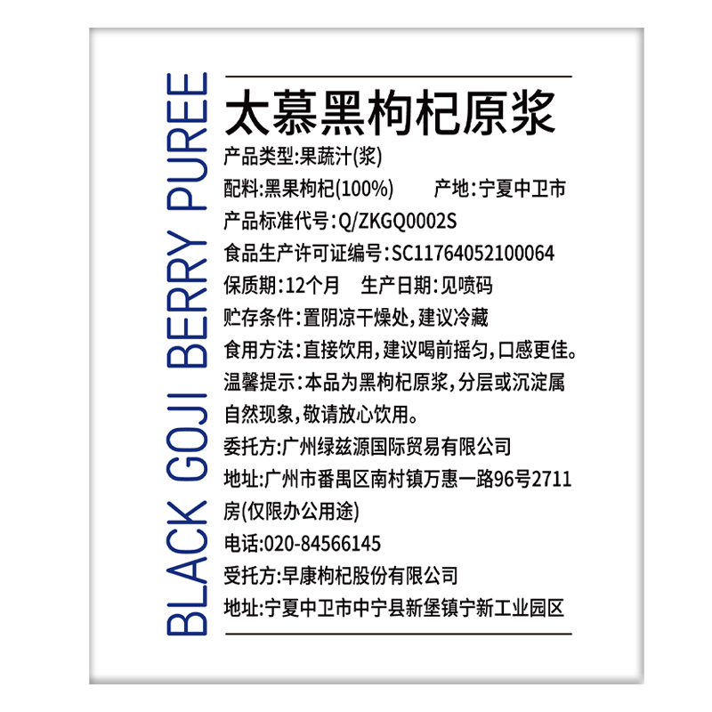 太慕黑枸杞原浆400ML(50ML*8瓶)装