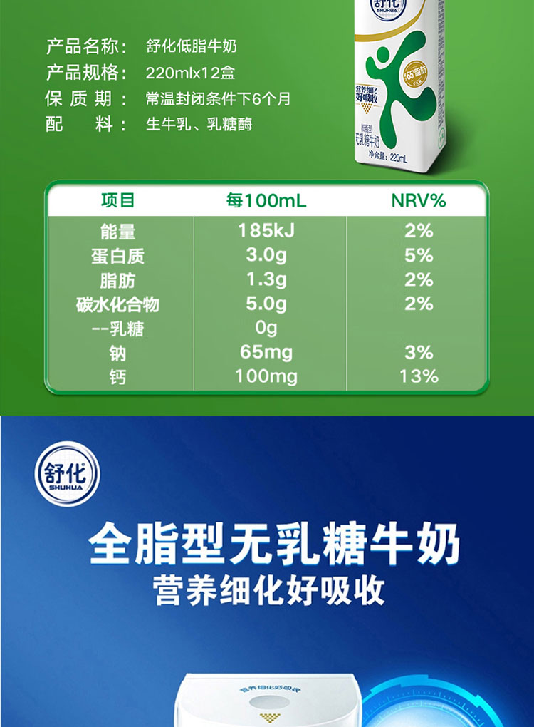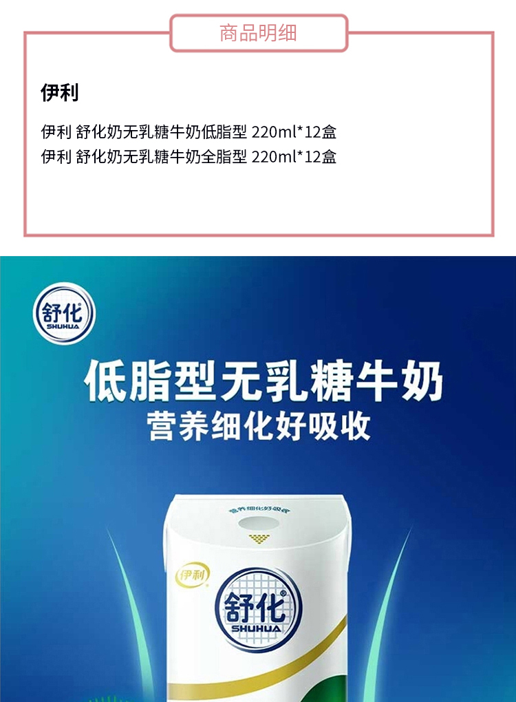 伊利舒化奶无乳糖牛奶低脂+伊利舒化奶无乳糖牛奶全脂