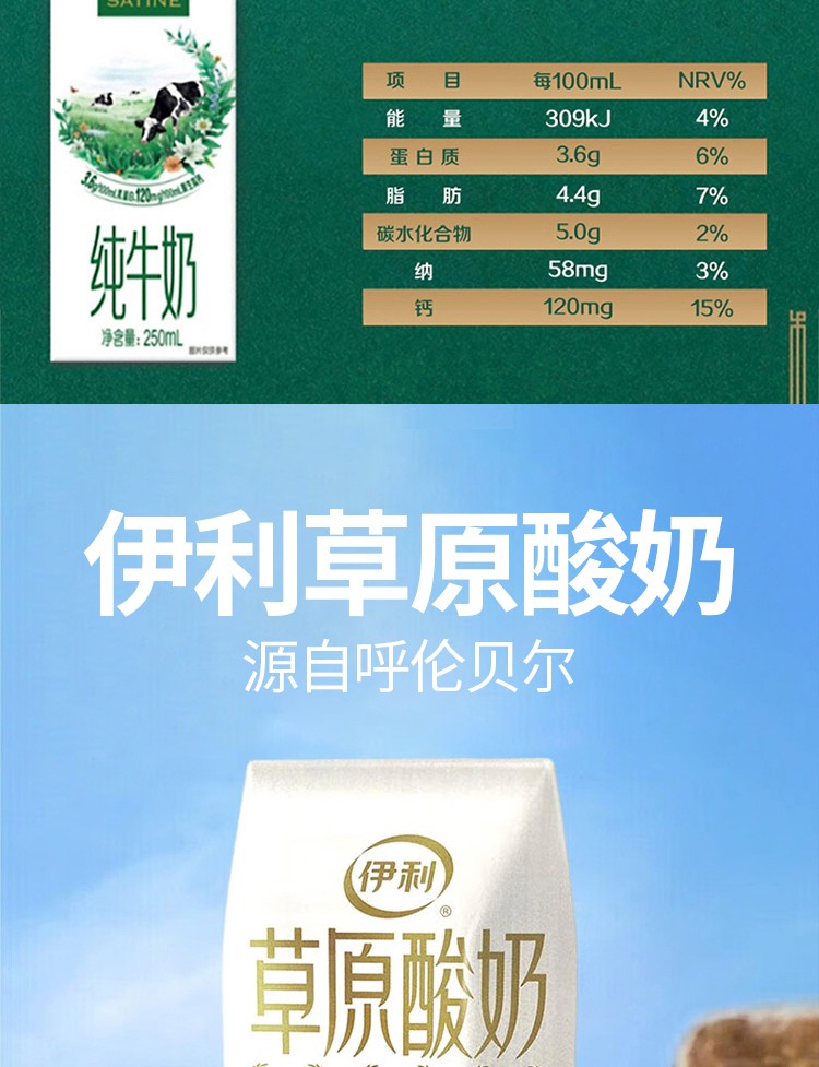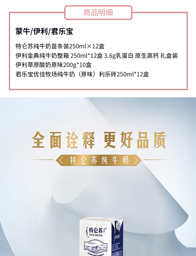 特仑苏纯牛奶苗条装+伊利金典纯牛奶+伊利草原酸奶原味+君乐宝优佳牧场纯牛奶
