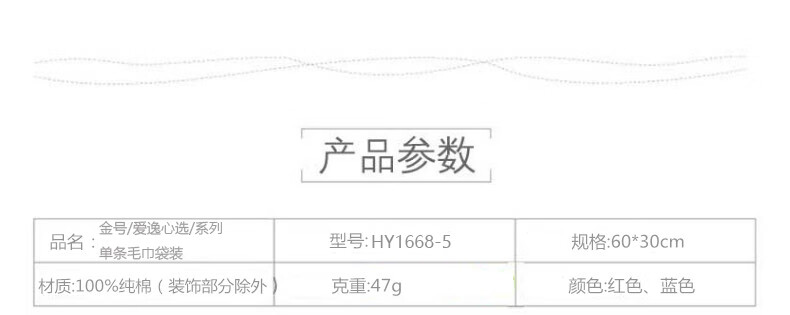 金号爱逸心选毛巾系列单条毛巾袋装HY1668-5