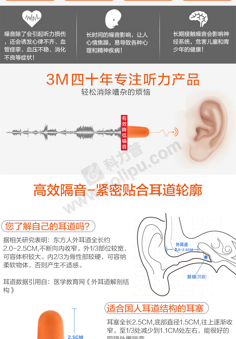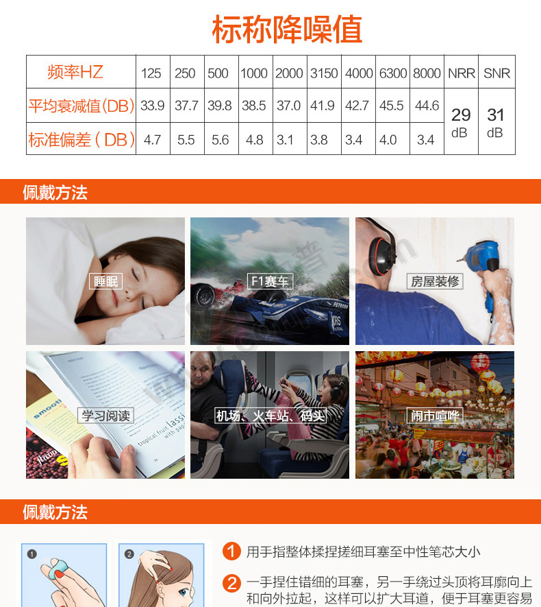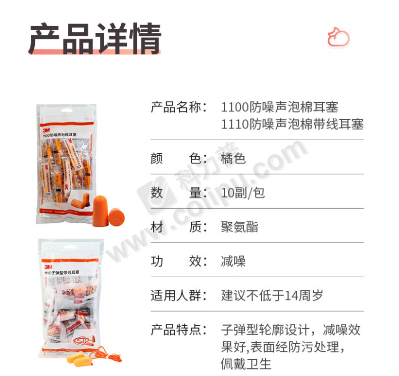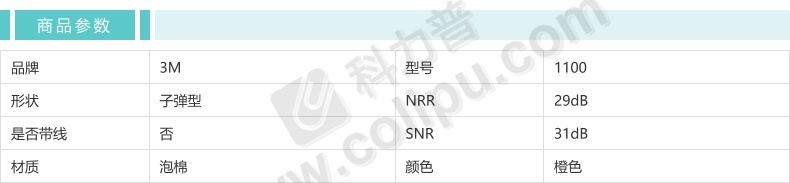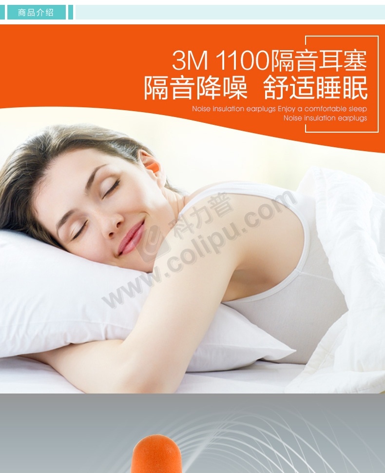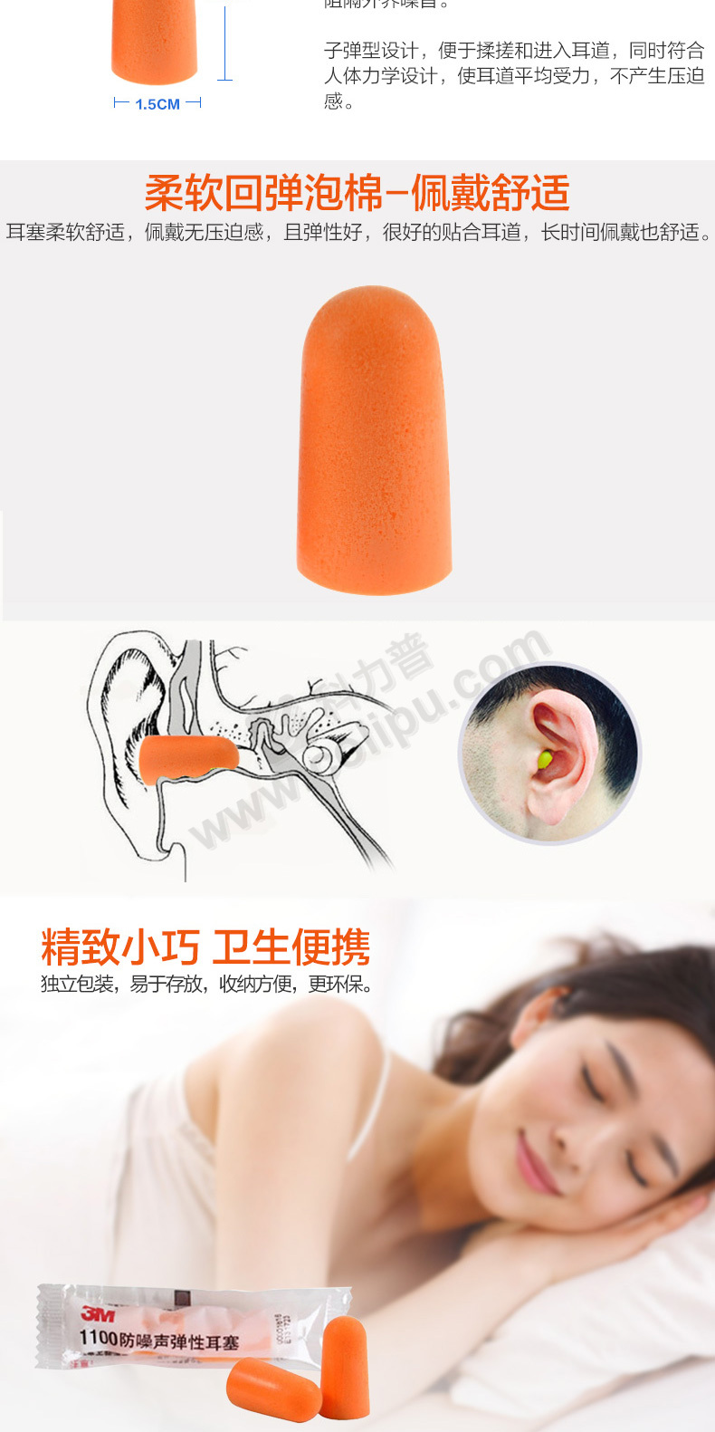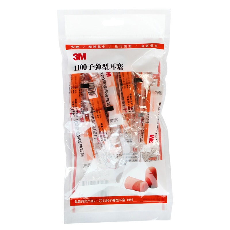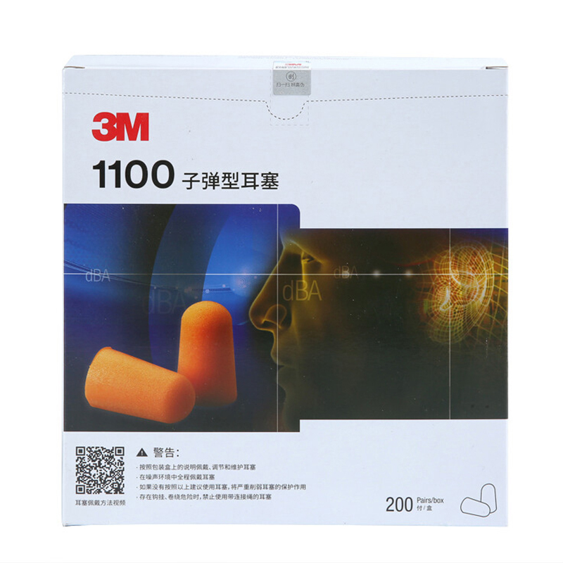 3M 防噪声弹性耳塞泡棉 1100 入耳式 均码 (橙色) 200副/盒