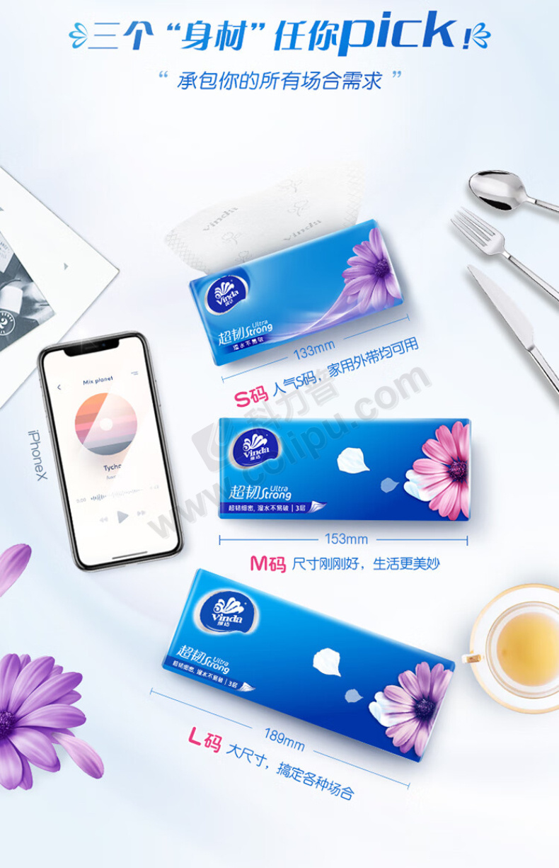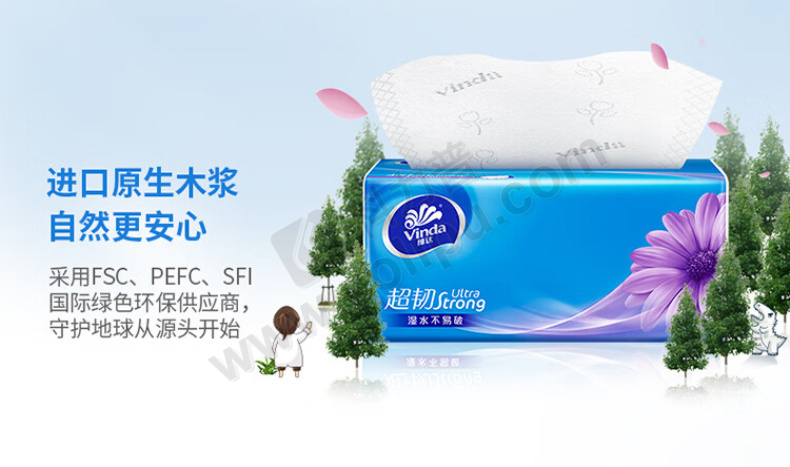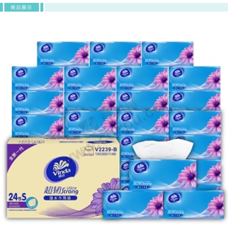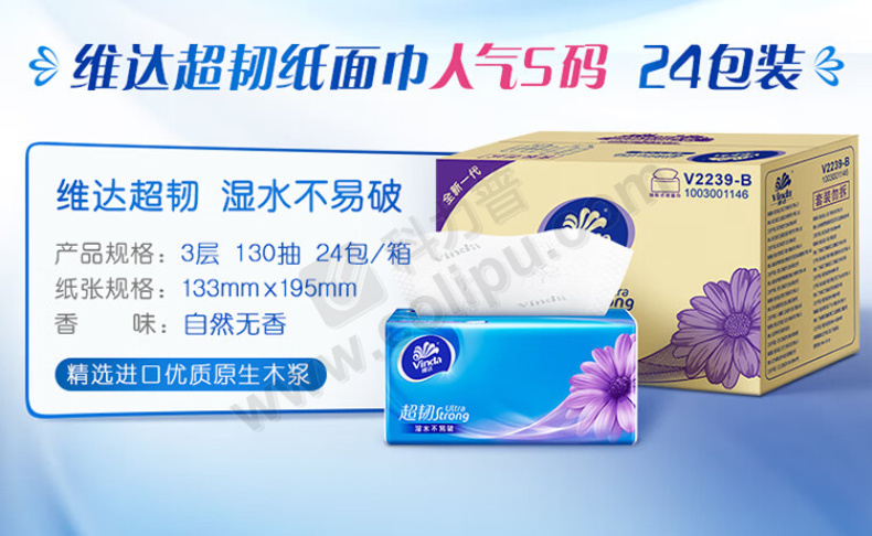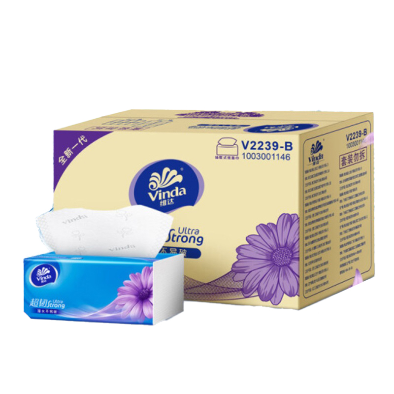 维达 vinda 超韧软包抽取式面巾纸 V2239-B 三层 S码 130抽/包 24包/箱 (新老包装交替发货)