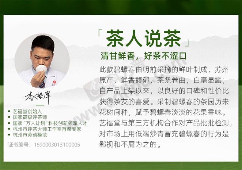 艺福堂 EFUTON 明前碧螺春 特级 250g/罐 24罐/箱