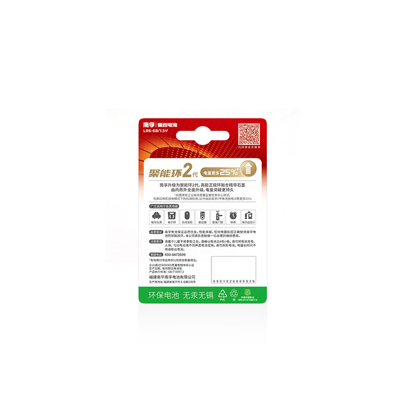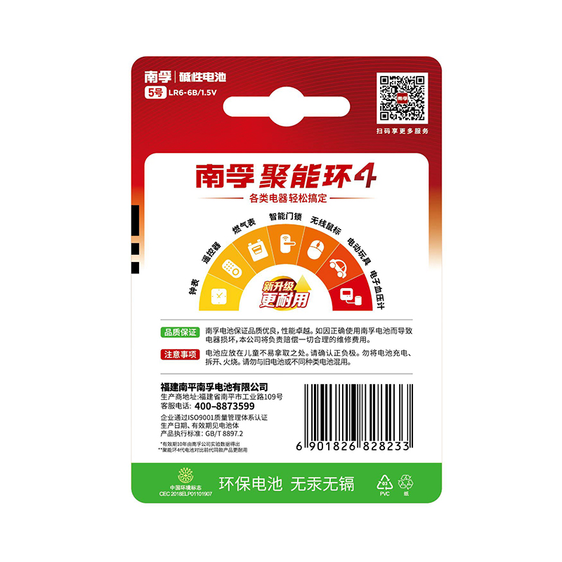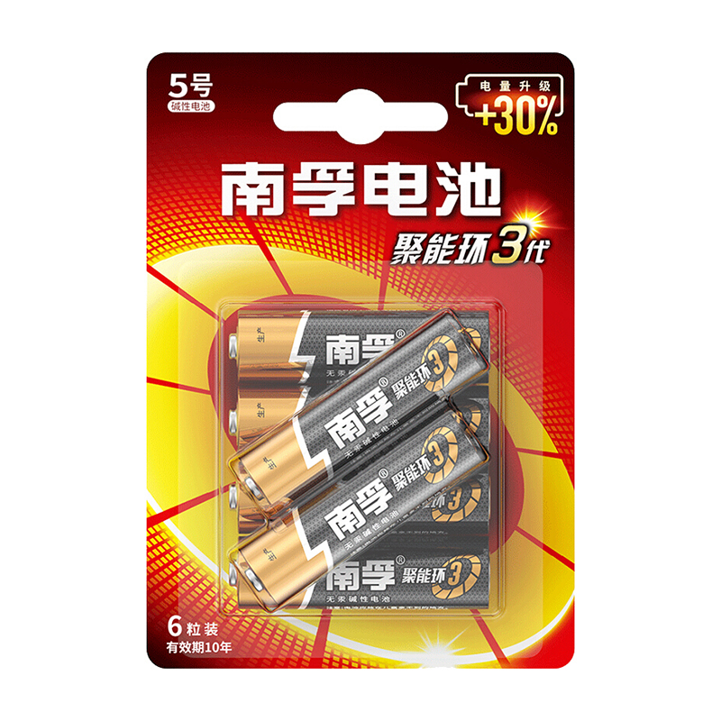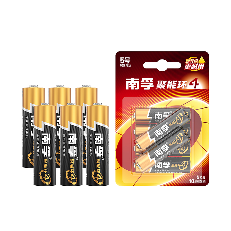 南孚 5号 碱性电池 LR6 1.5V 6节/卡 20卡/盒 120卡/箱 聚能环4代与5代随机发货