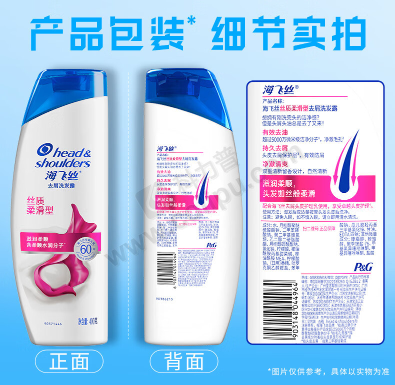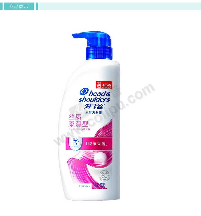 海飞丝 HEAD&SHOULDERS 去屑洗发露 (丝质柔滑) 430g/瓶 12瓶/箱 (老包装400g/瓶,新包装430g/瓶,新老包装交替发货)
