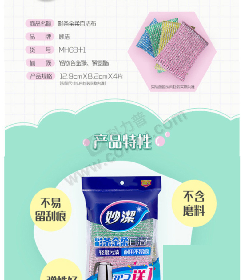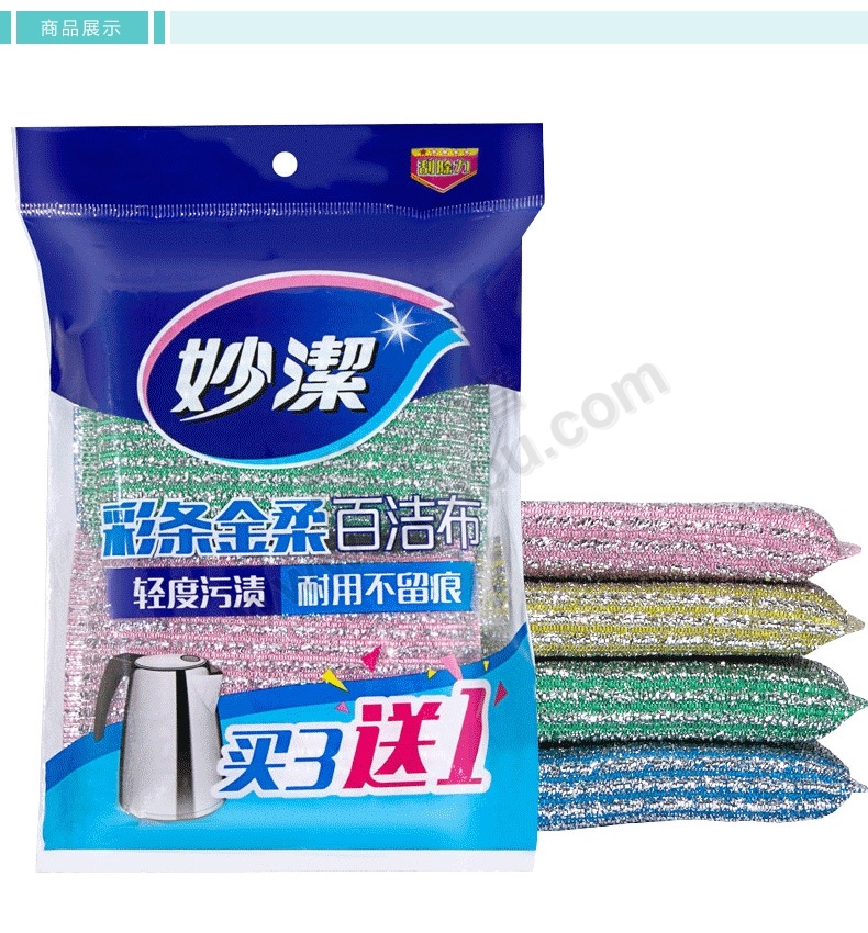 妙洁 MIAOJIE 彩条金柔百洁布 MHG3+1 12.9cm*8.2cm (颜色随机) 4片/包 30包/箱