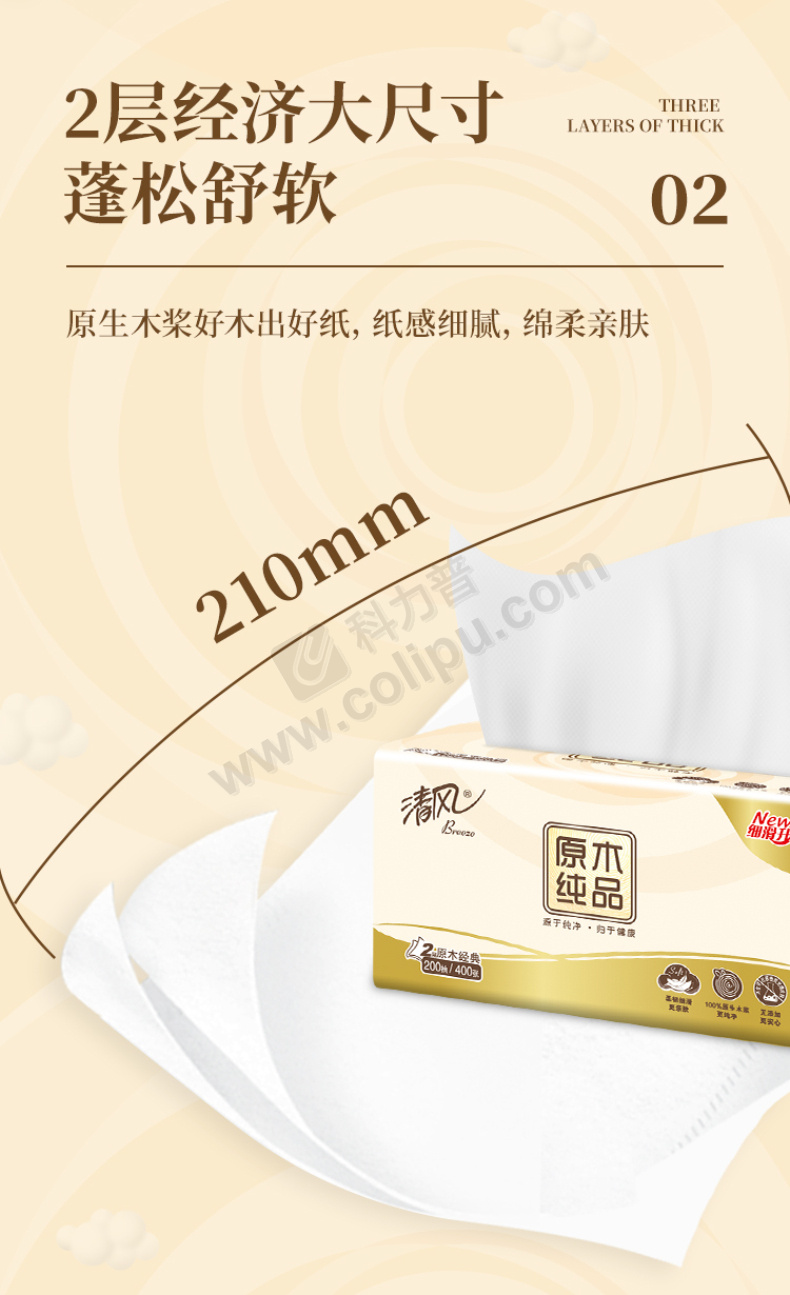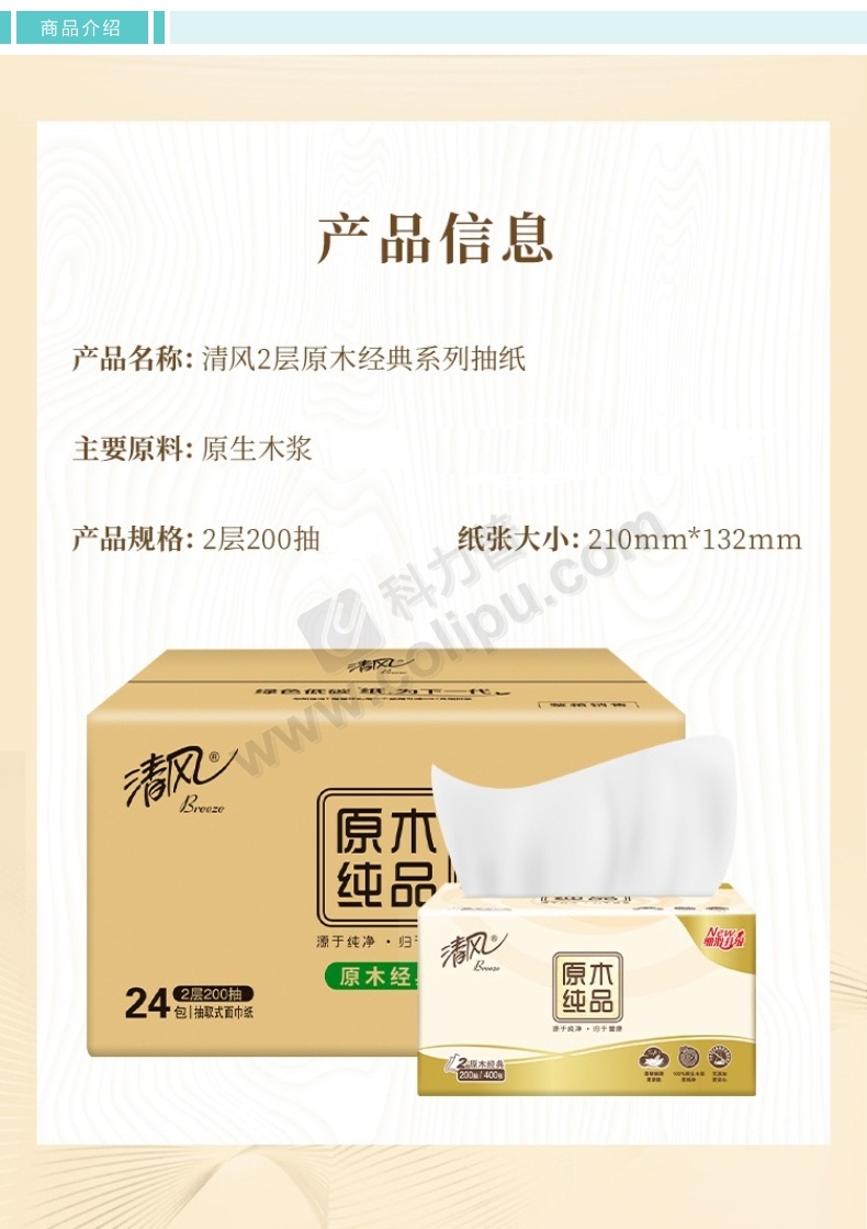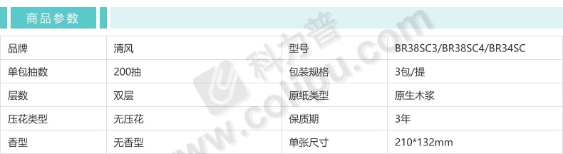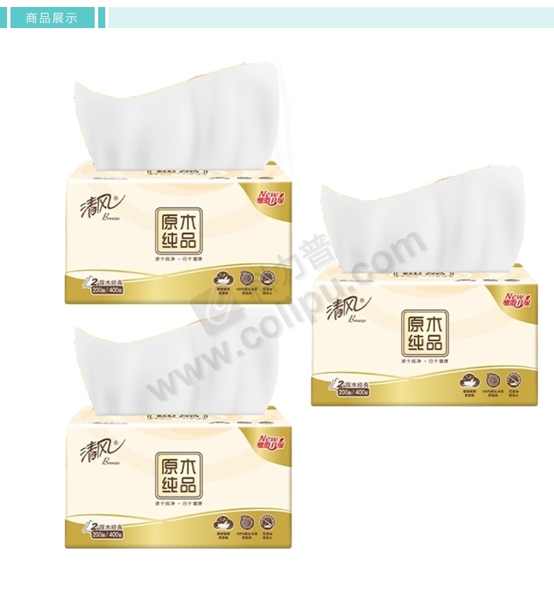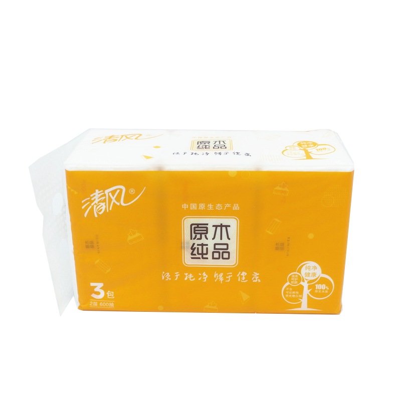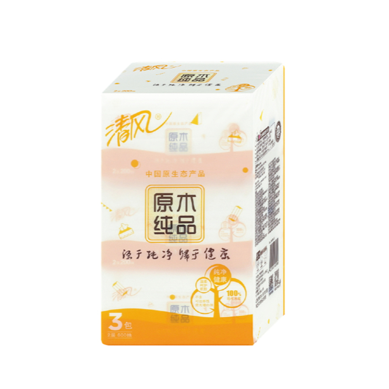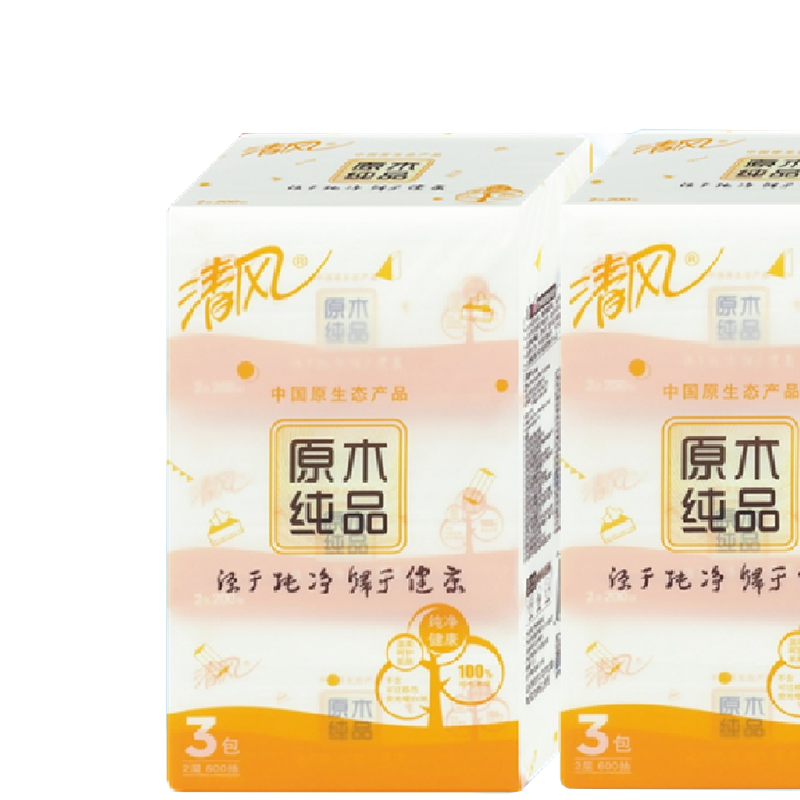 清风 原木纯品迷你软包抽取式面纸 BR38SC3/BR38SC4 210*132mm/190*132mm 双层/四层 200抽/120抽 3包/提 16提/箱 (新老包装交替以实物为准)