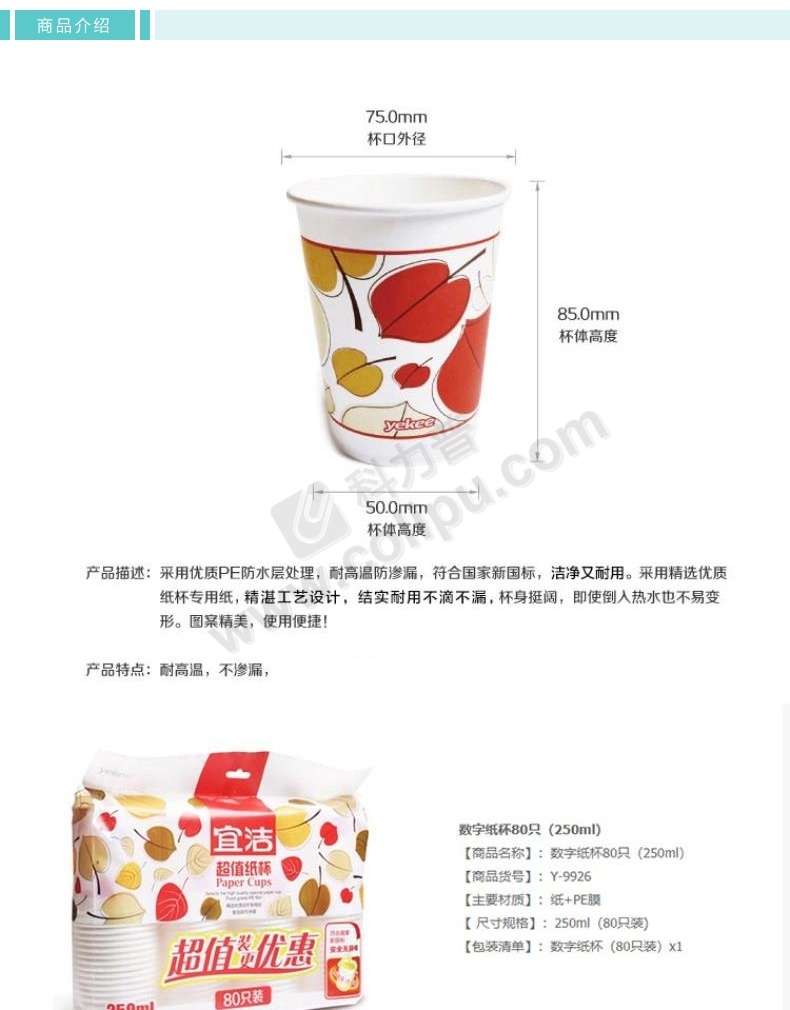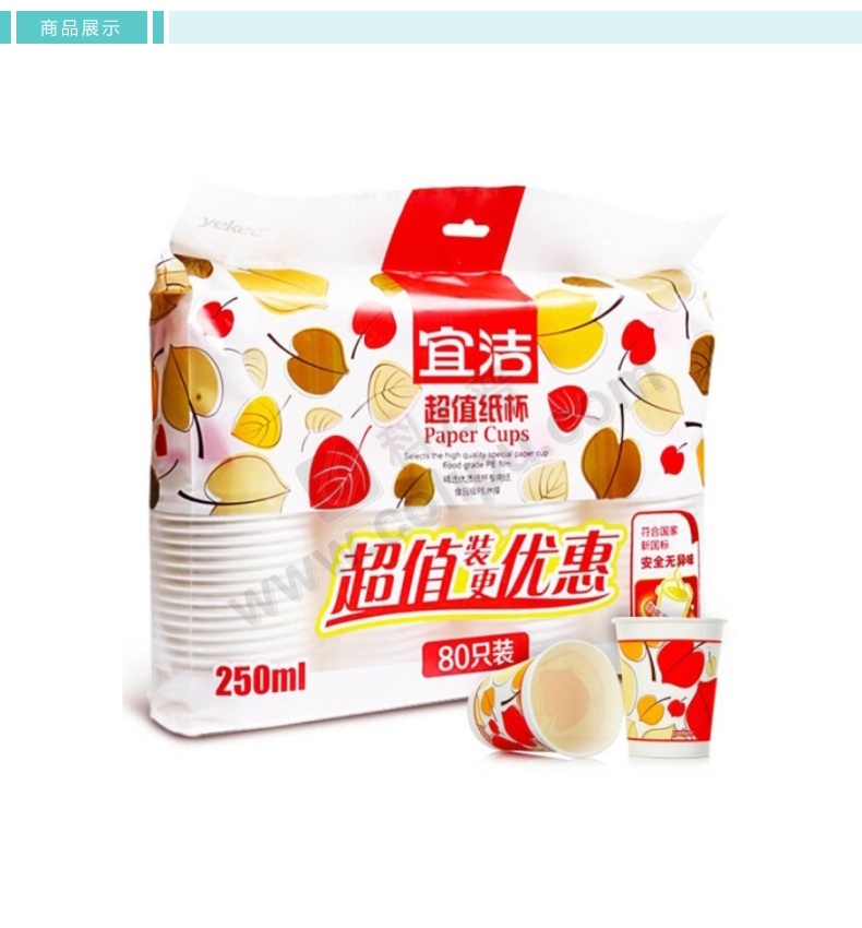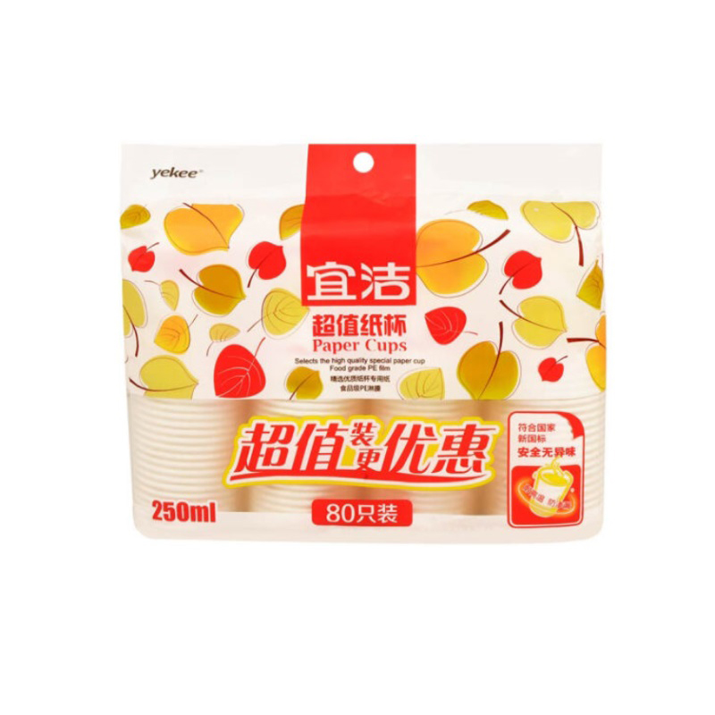 宜洁 一次性纸杯 Y-9926 250ml (花色) 80只/包 20包/箱 (新老包装交替发货)